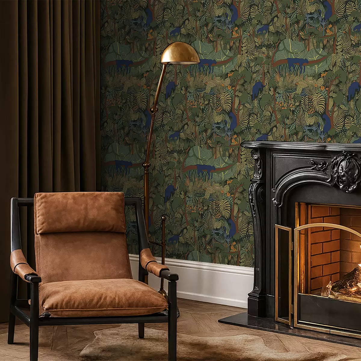 Tapete Dunkle Waldszene mit Tieren Nr. a01108v1