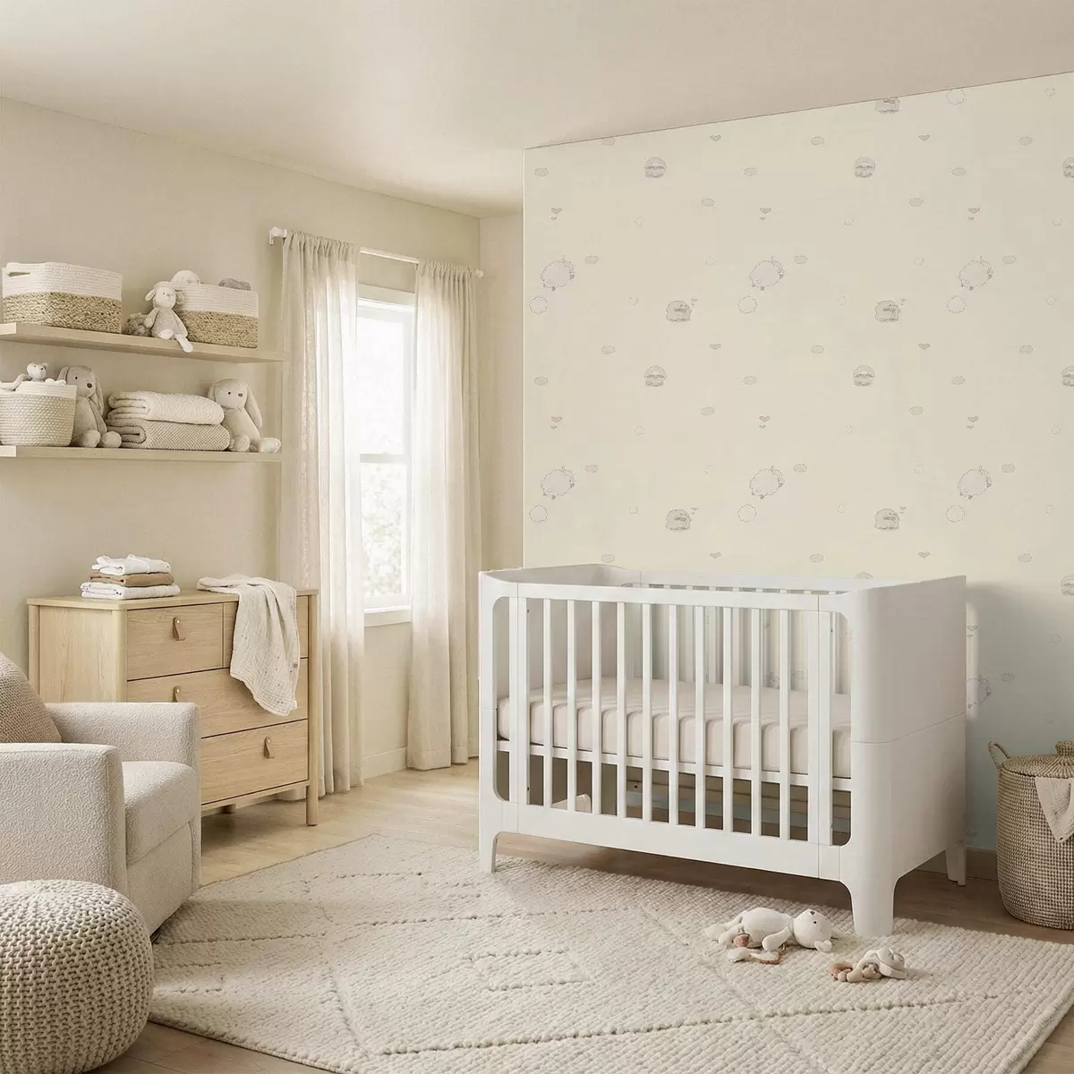 Tapete Niedliches Muster mit Schafen und kleinen Herzen Nr. a01109