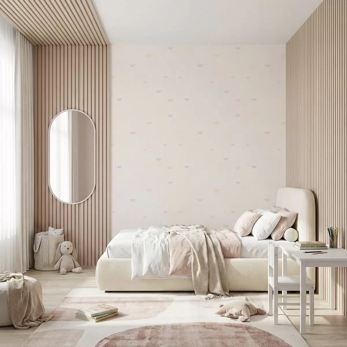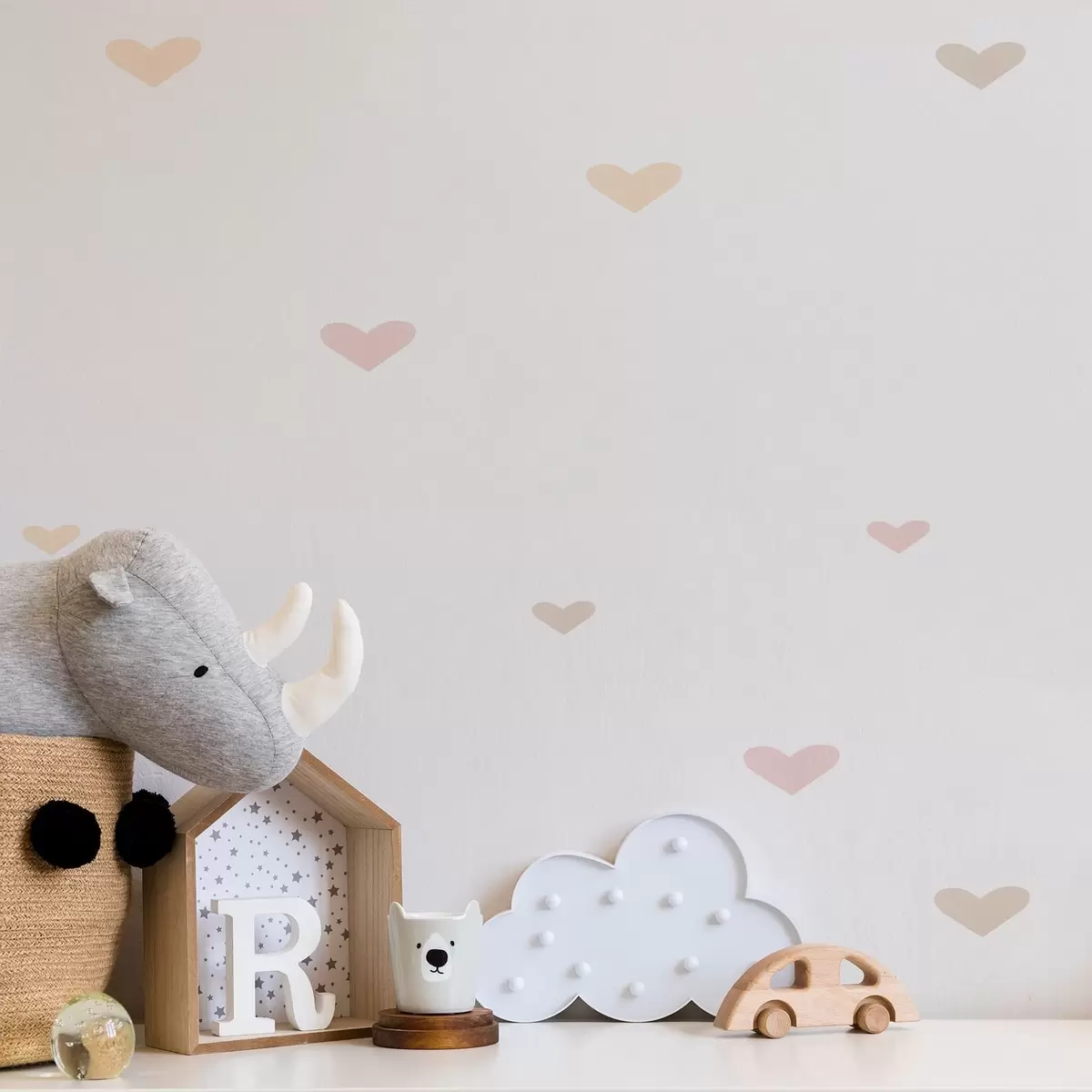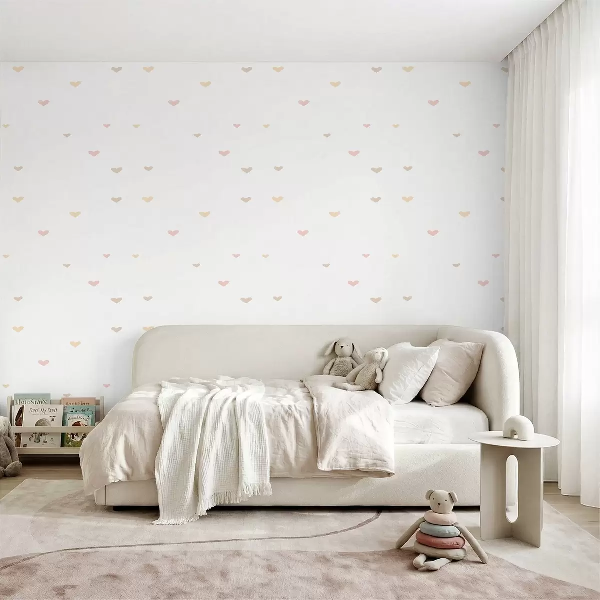 Tapete Verstreute Pastellherzen auf hellem Hintergrund Nr. a01110