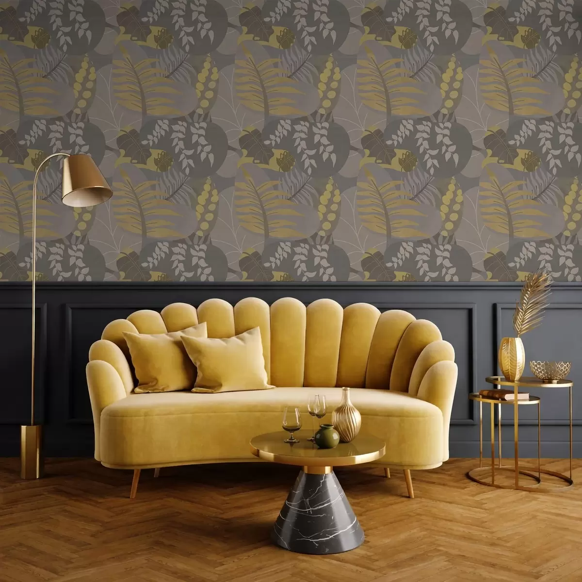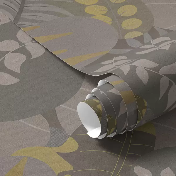 Tapete Abstrakte Blätter in Grau- und Gelbtönen Nr. a01112