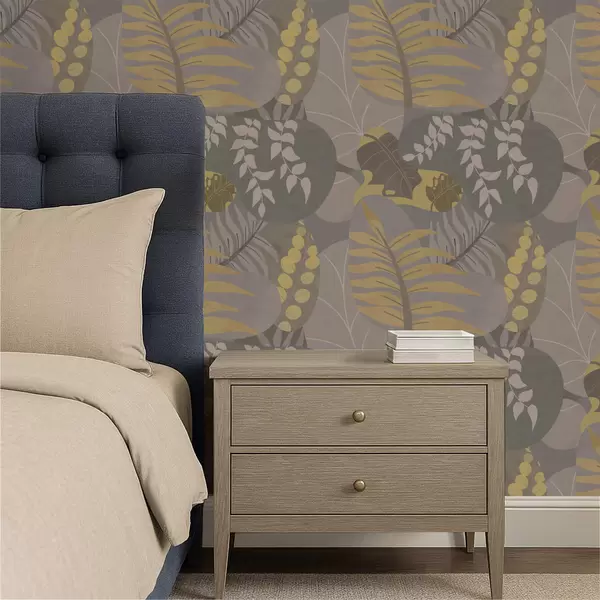 Tapete Abstrakte Blätter in Grau- und Gelbtönen Nr. a01112