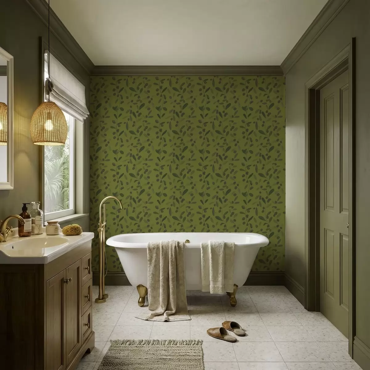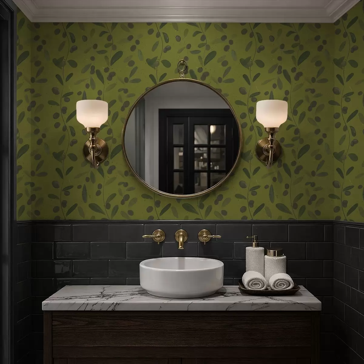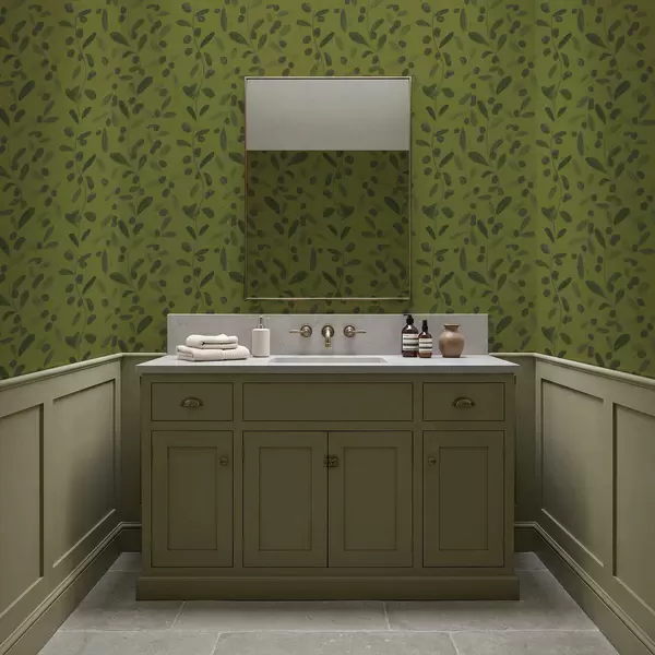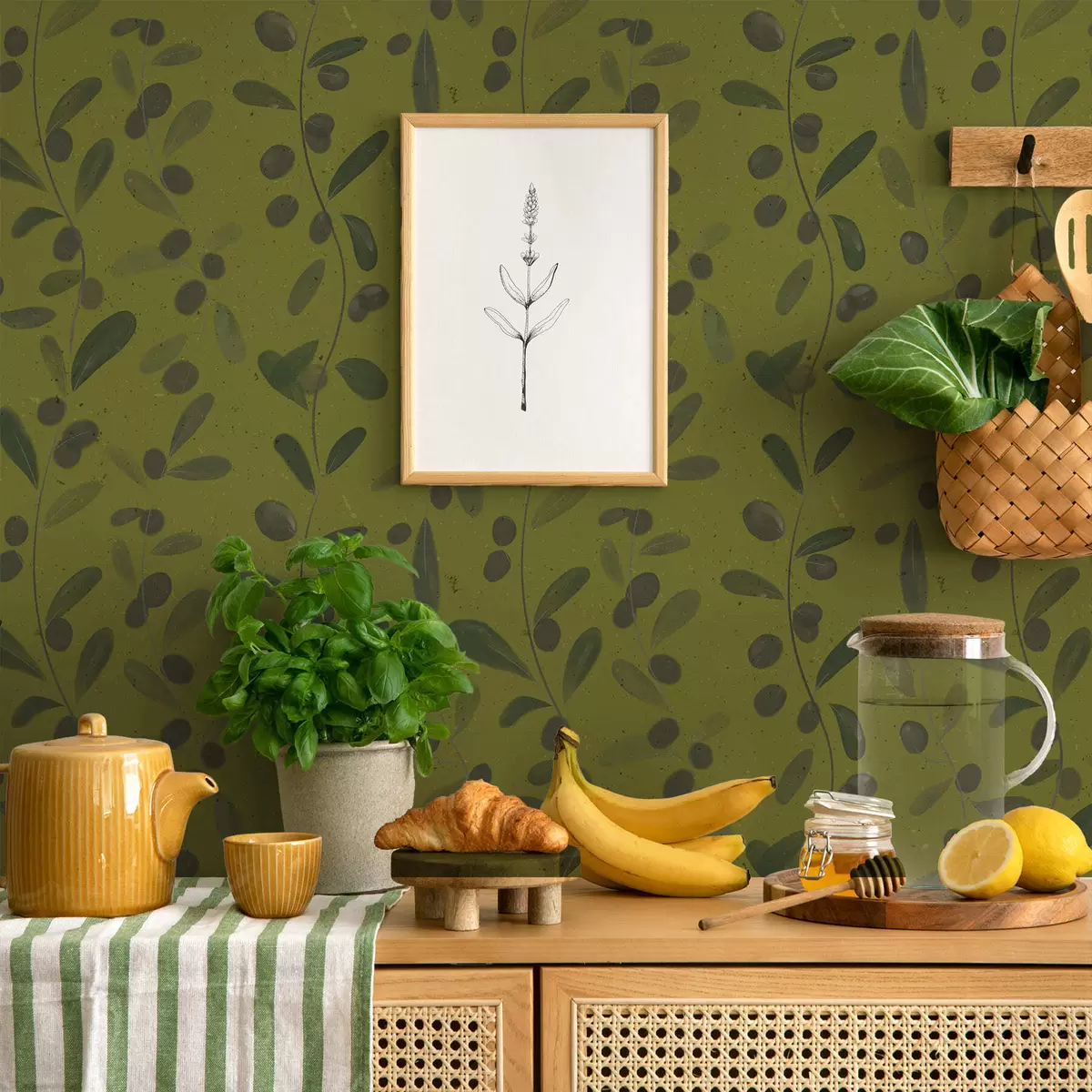 Tapete Grüne Zweige mit Blättern und Beeren auf Olivenbaum Nr. a01113