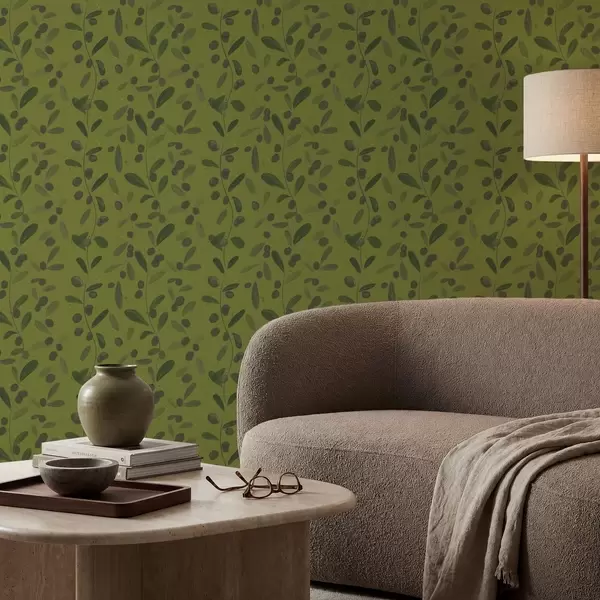 Tapete Grüne Zweige mit Blättern und Beeren auf Olivenbaum Nr. a01113