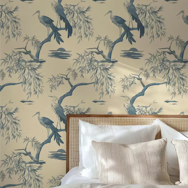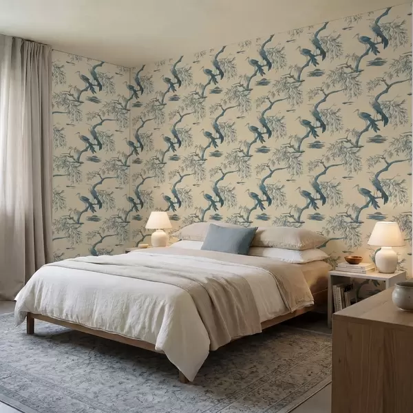 Tapete Vögel auf einem Ast in Blautönen Nr. a01116