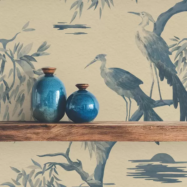 Tapete Vögel auf einem Ast in Blautönen Nr. a01116