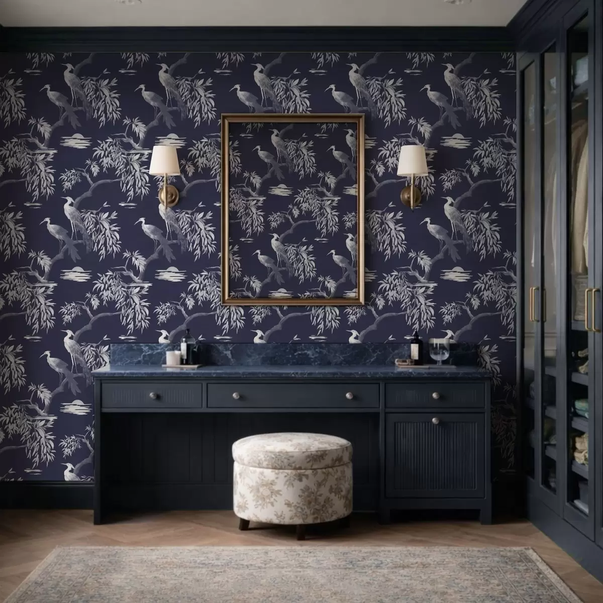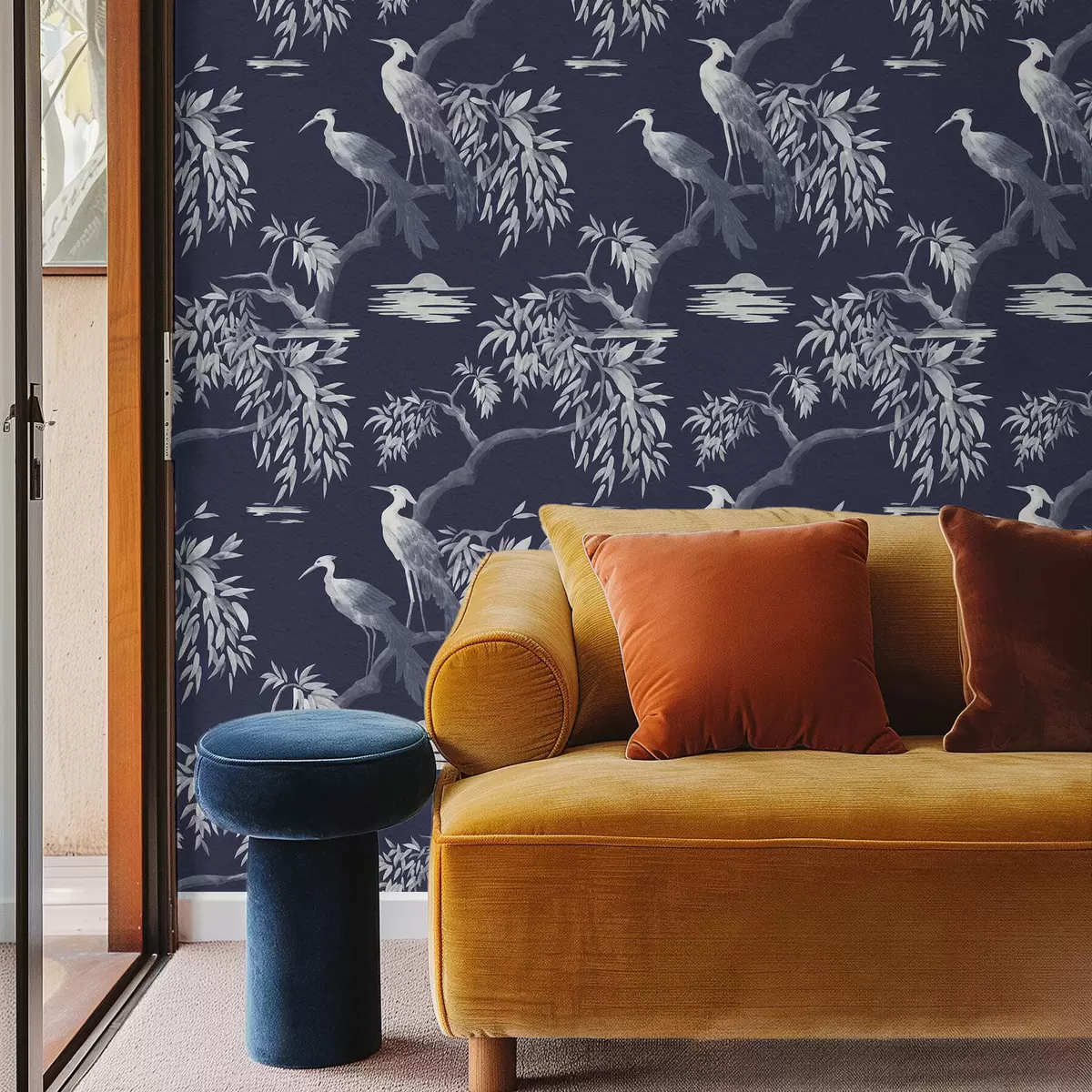 Tapete Vögel auf einem Ast vor dunkelblauem Hintergrund Nr. a01116v1