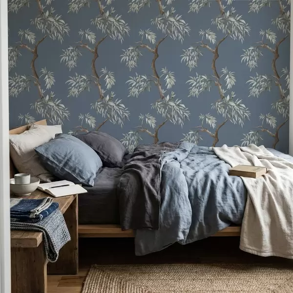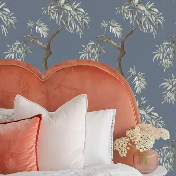 Tapete Baumzweig mit Blättern auf blauem Hintergrund Nr. a01117
