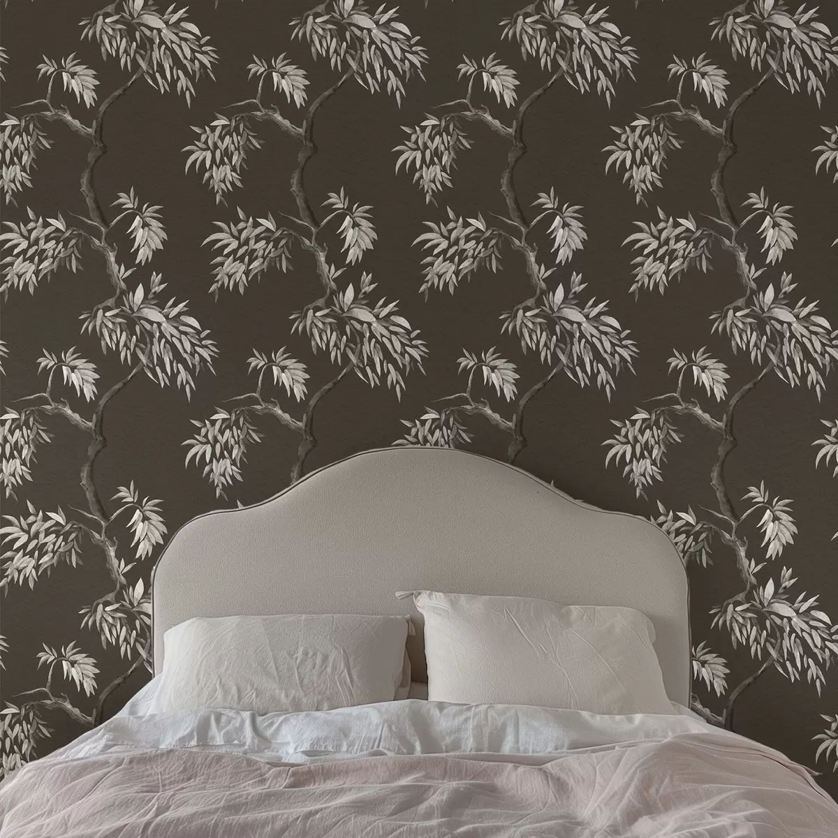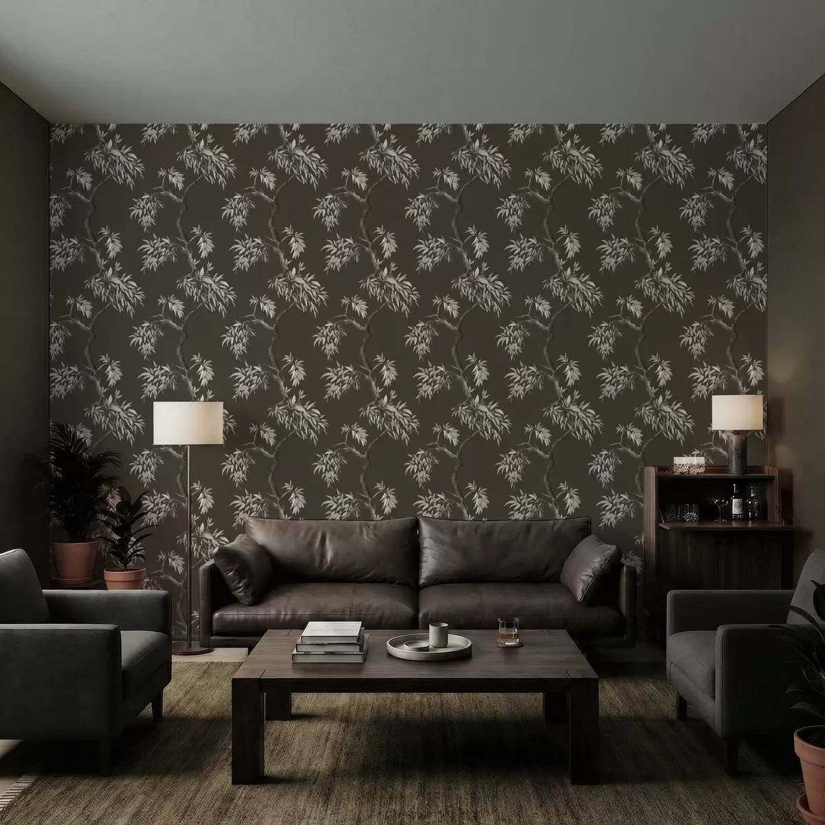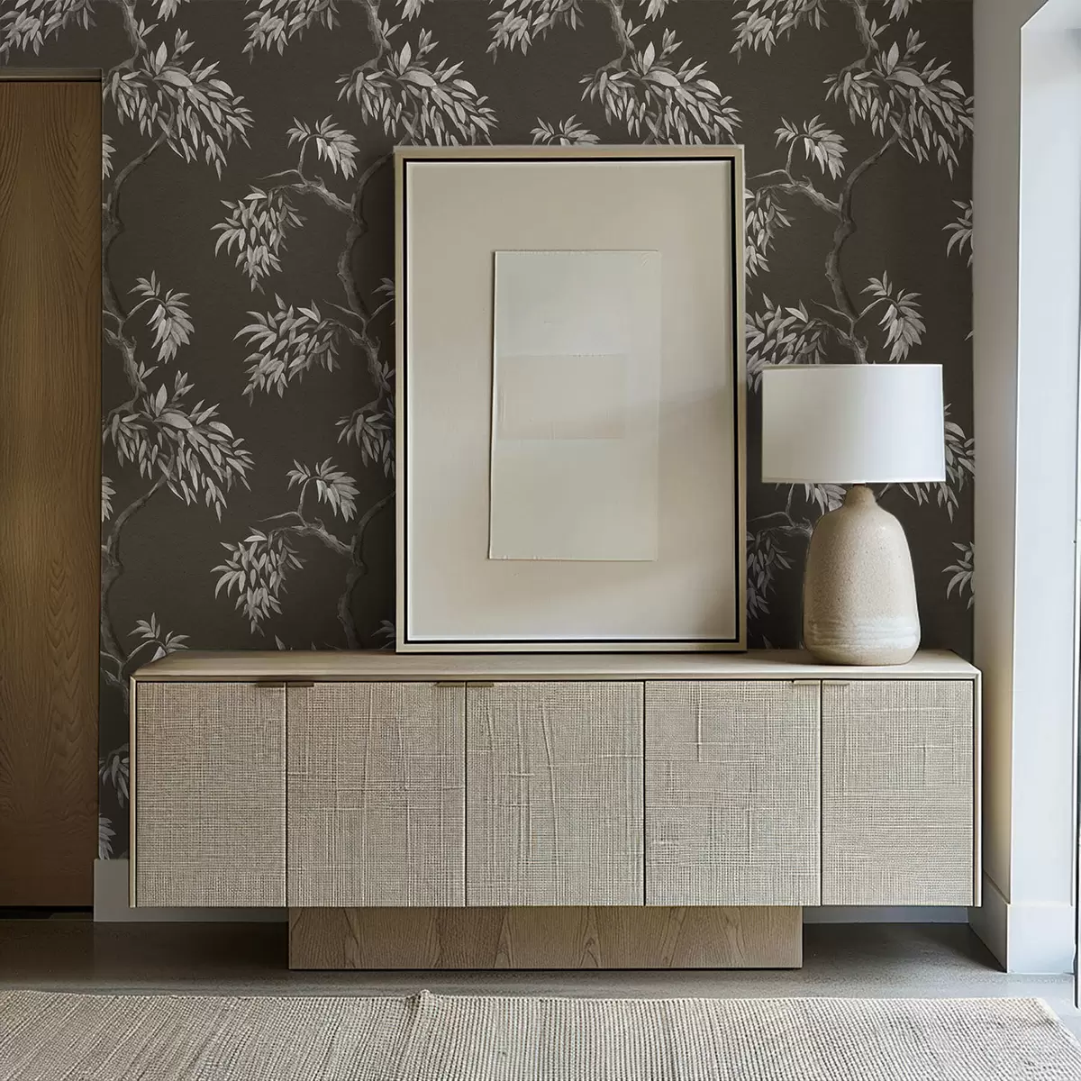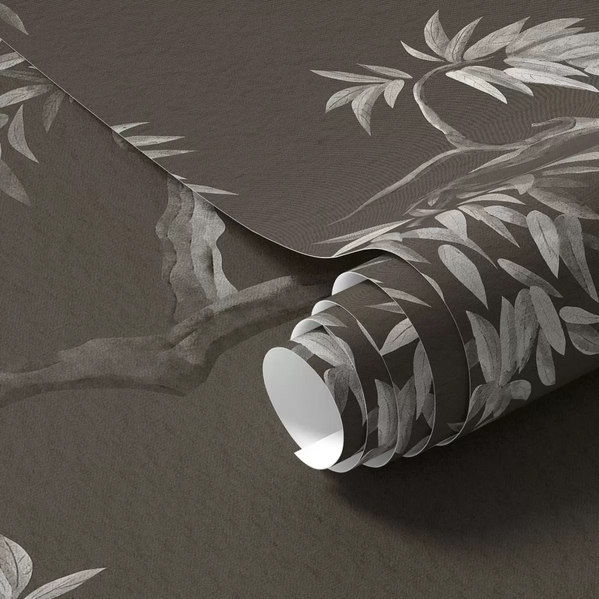 Tapete Monochromer Ast mit Blättern auf dunklem Hintergrund Nr. a01117v2