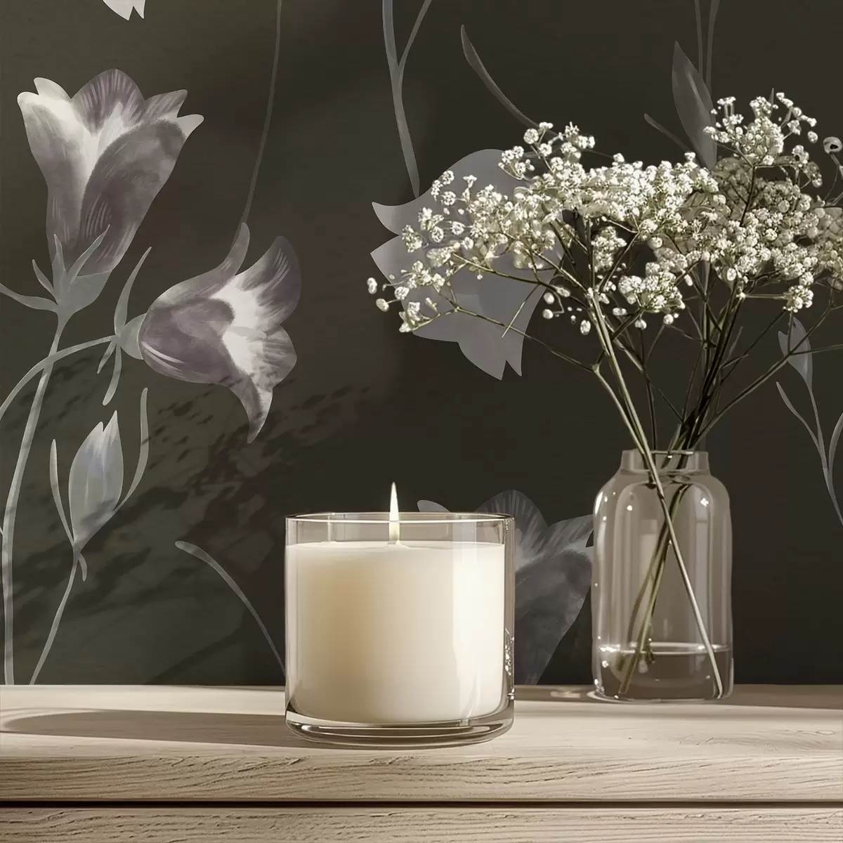 Tapete Graue Glockenblumen auf dunklem Hintergrund Nr. a01119v1