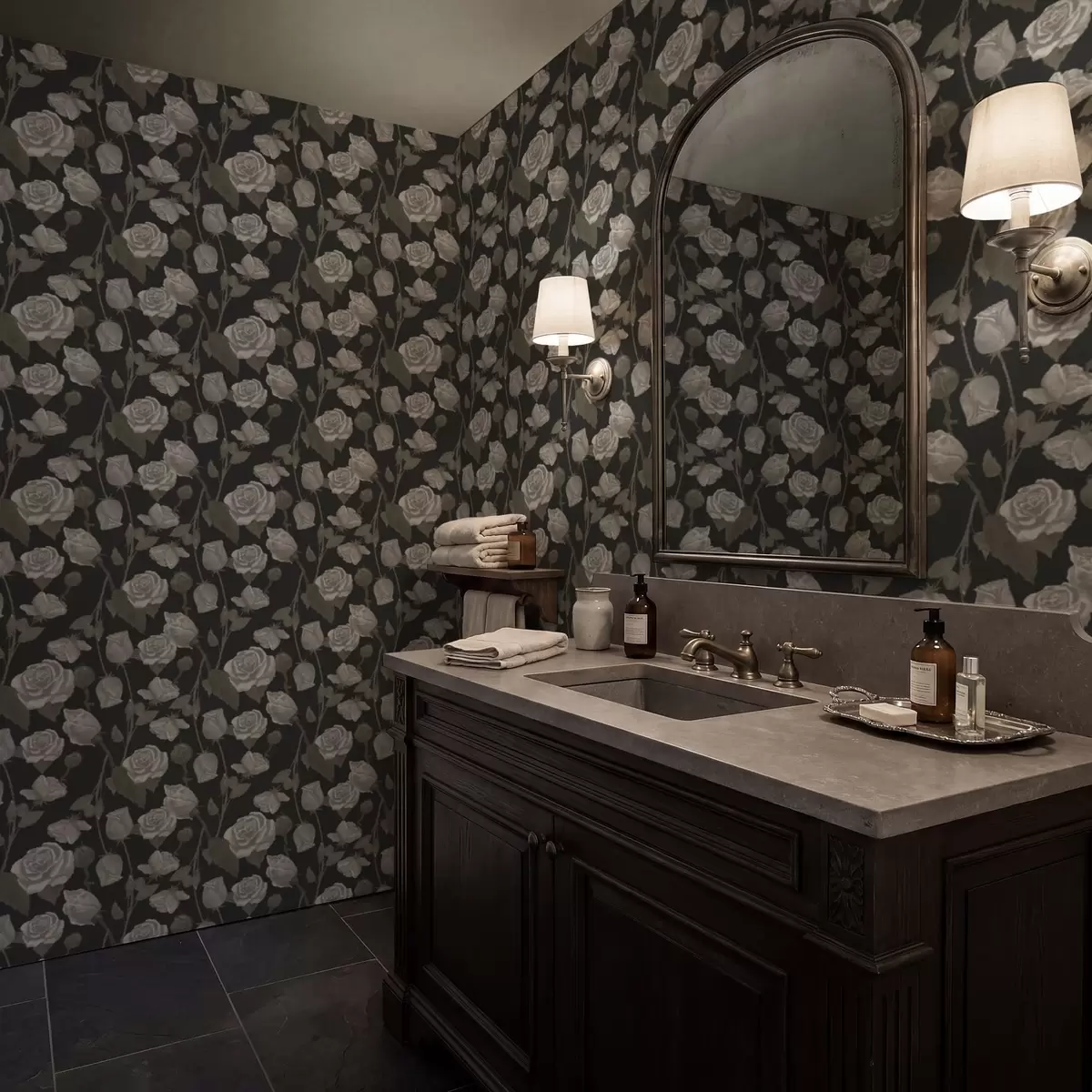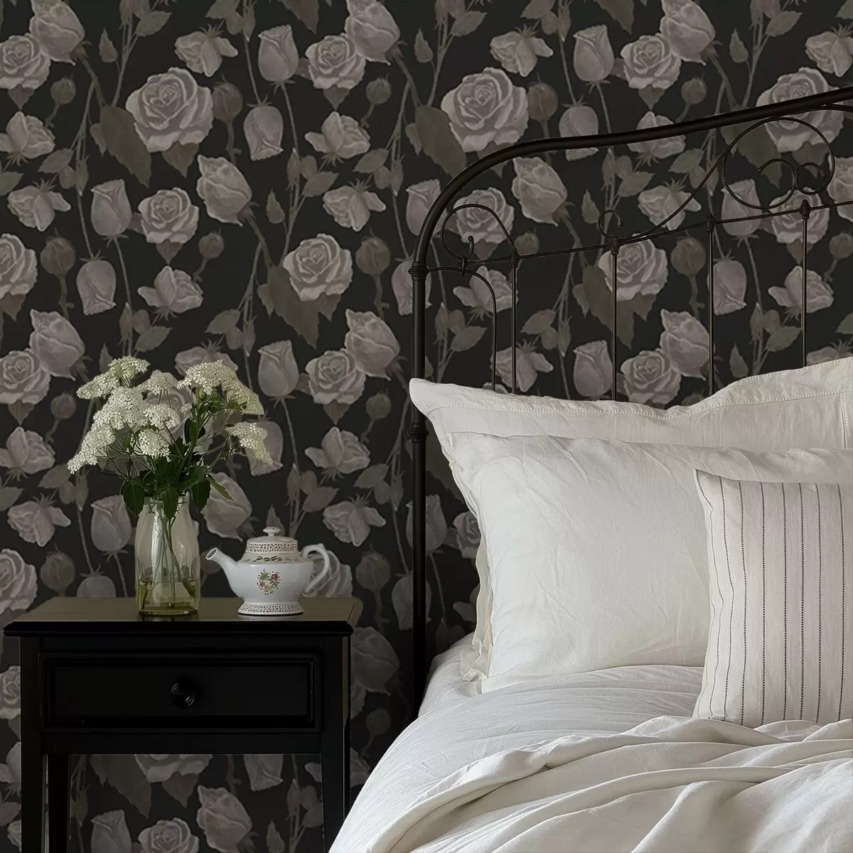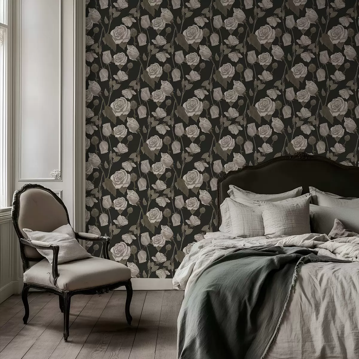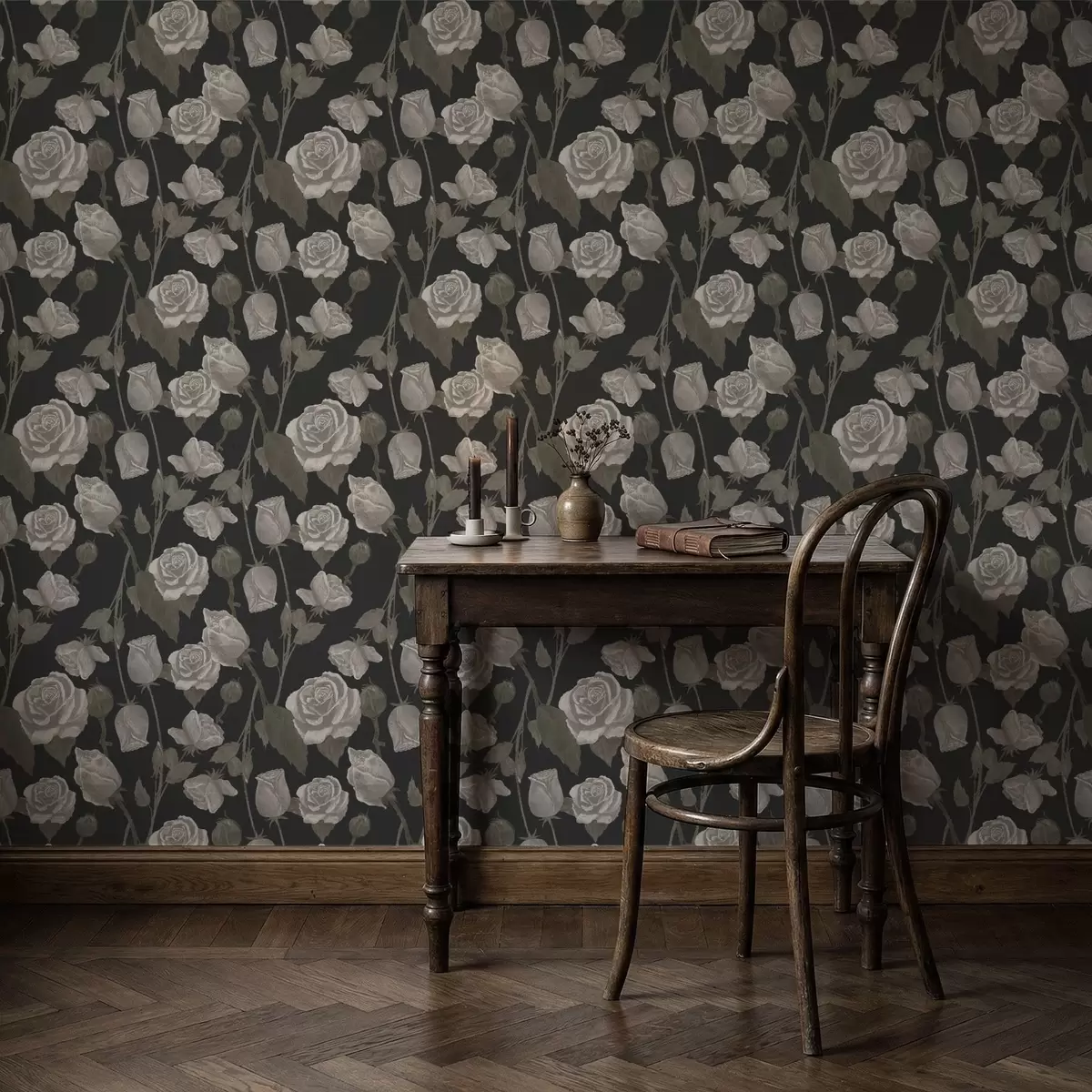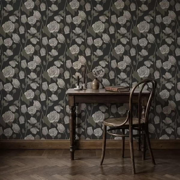 Tapete Blumenmuster mit Rosen auf dunklem Hintergrund Nr. a01123