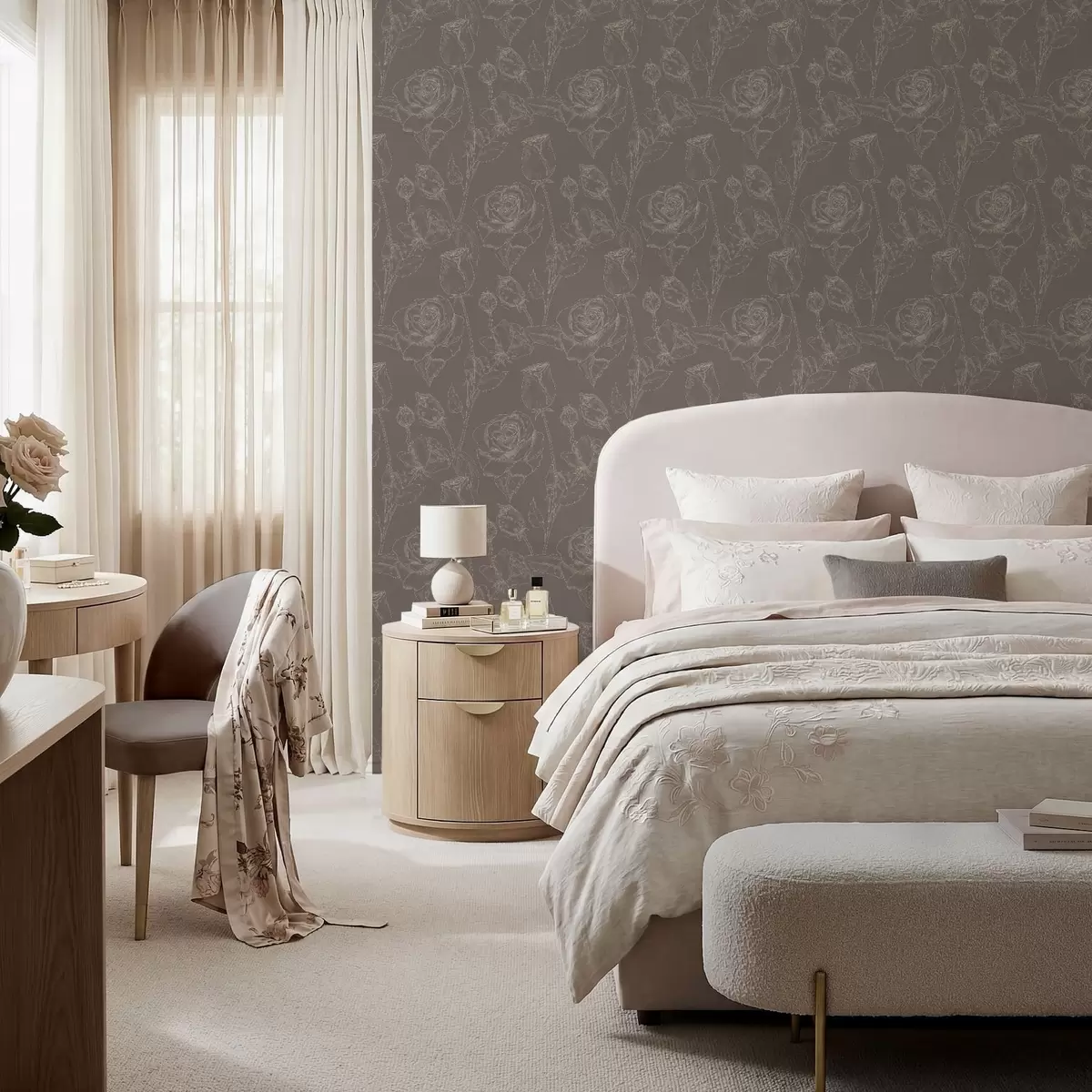 Tapete Dunkles Rosenmuster auf braunem Hintergrund Nr. a01124v1