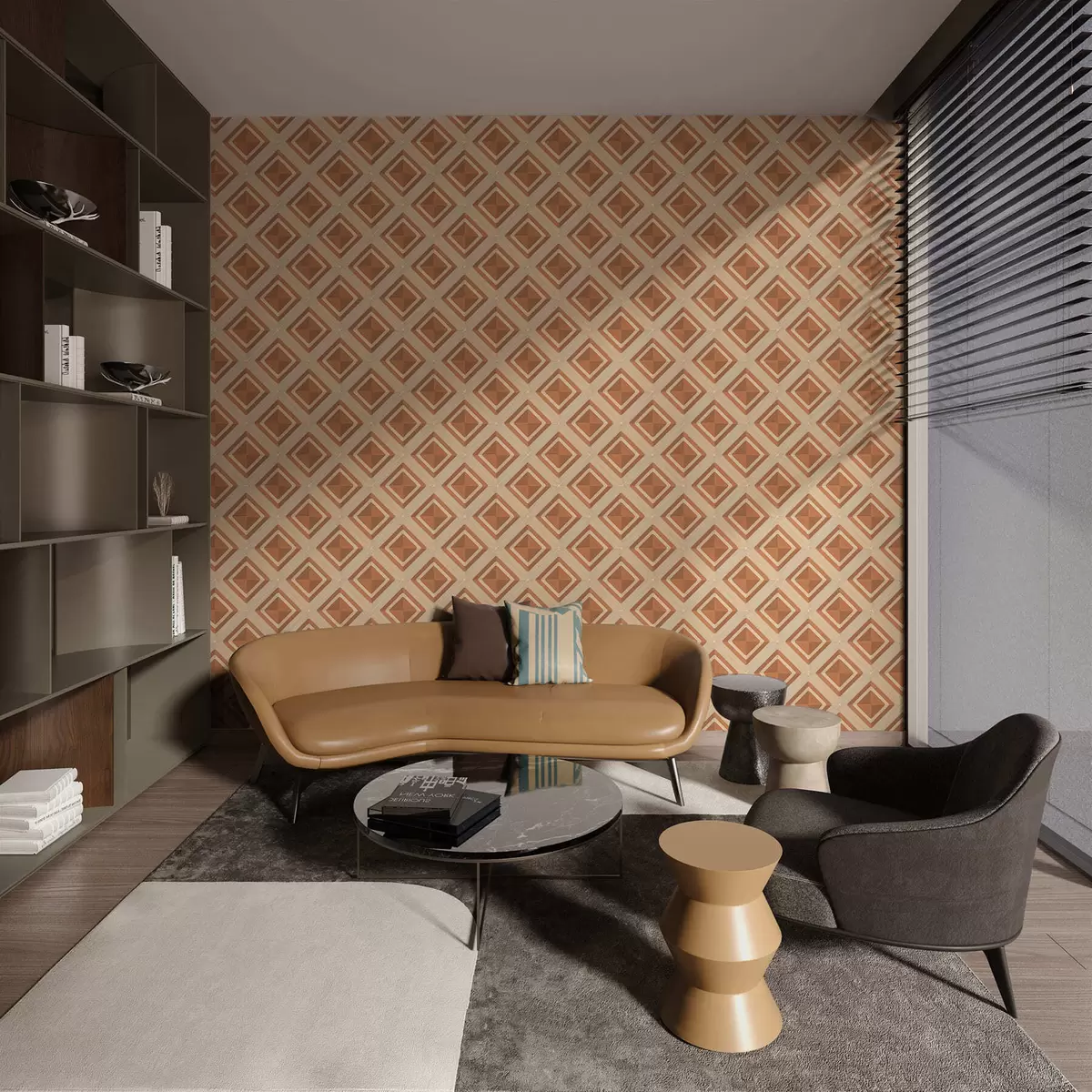 Tapete Geometrisches Rautenmuster in Terrakotta-Farbtönen Nr. a01128