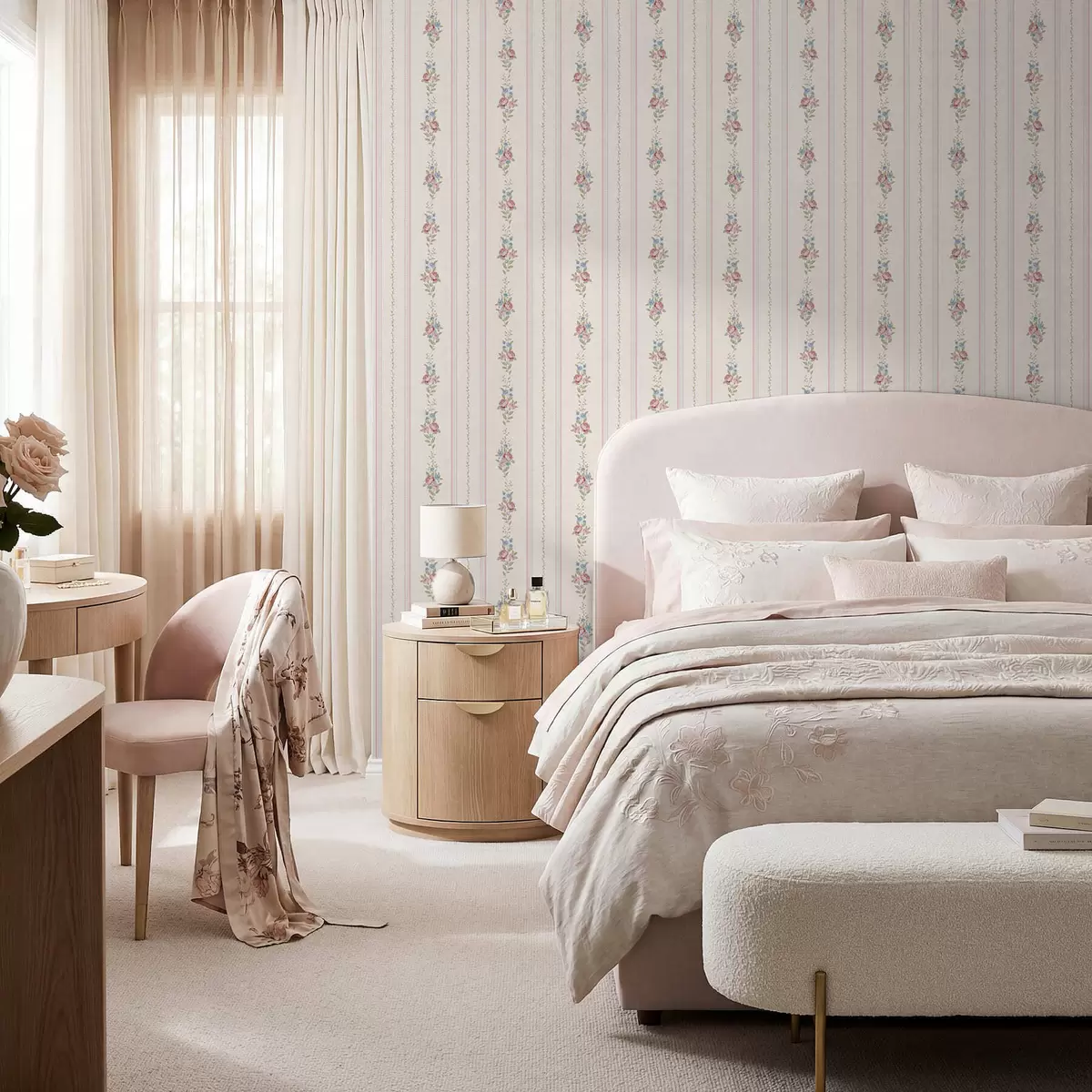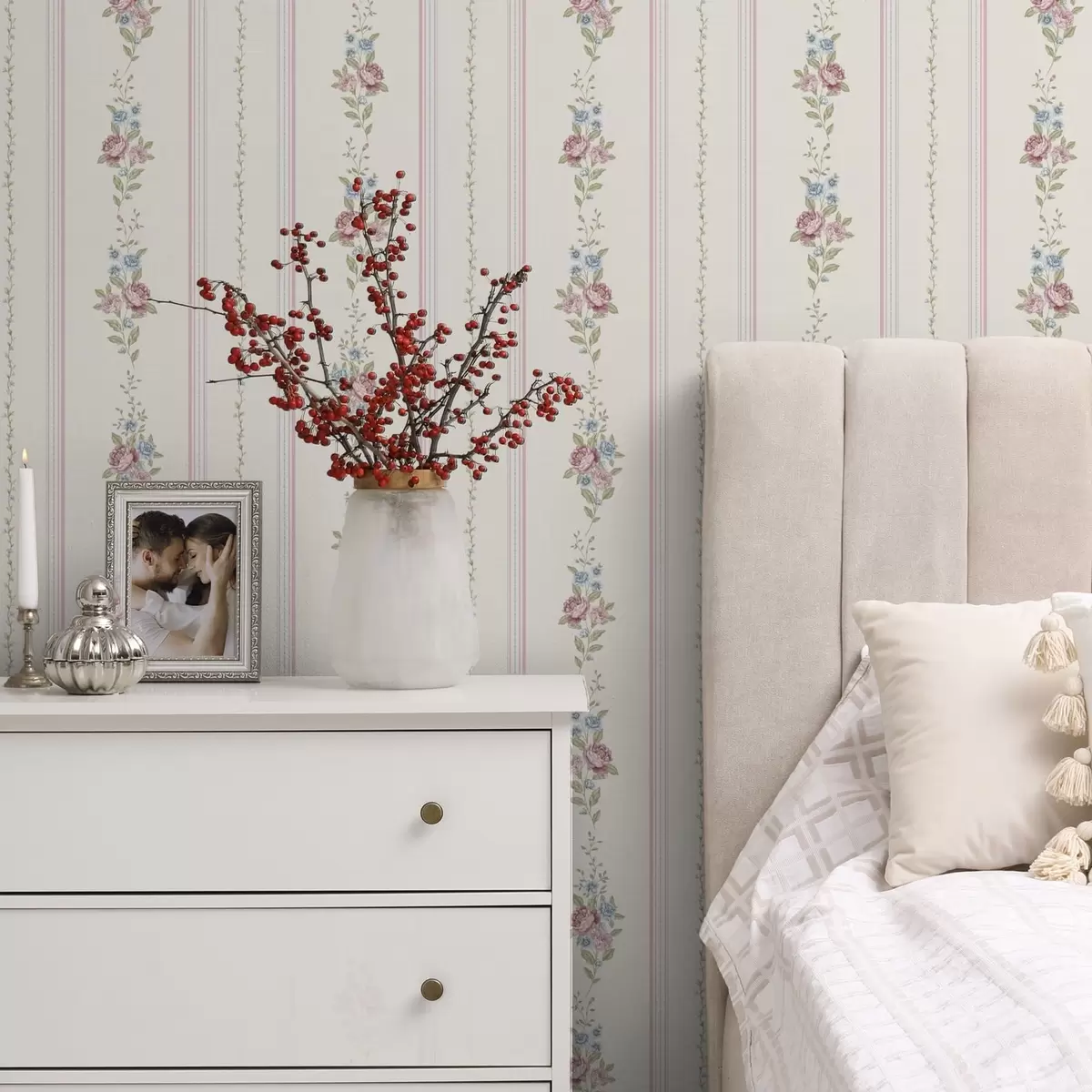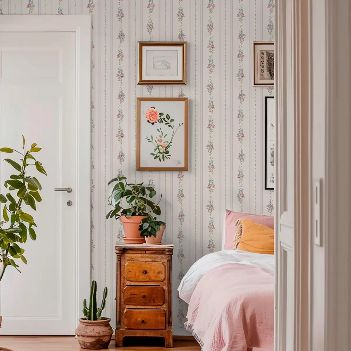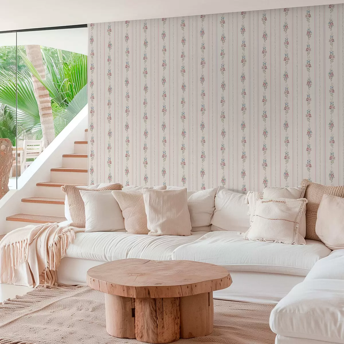 Tapete Gestreiftes Blumenmuster in sanften Farben Nr. a01130