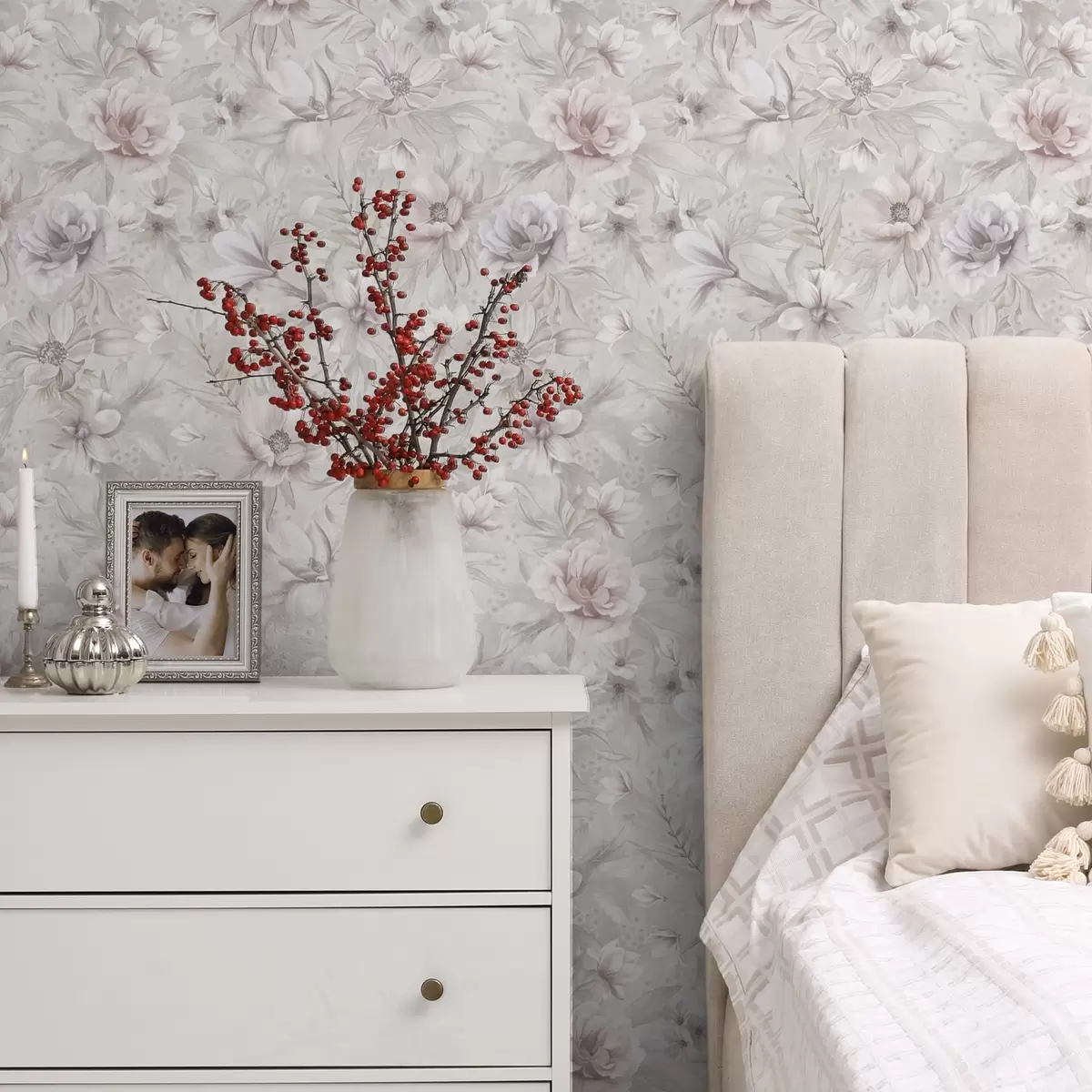 Tapete Leichtes Muster mit großen, zarten Blüten Nr. a01133