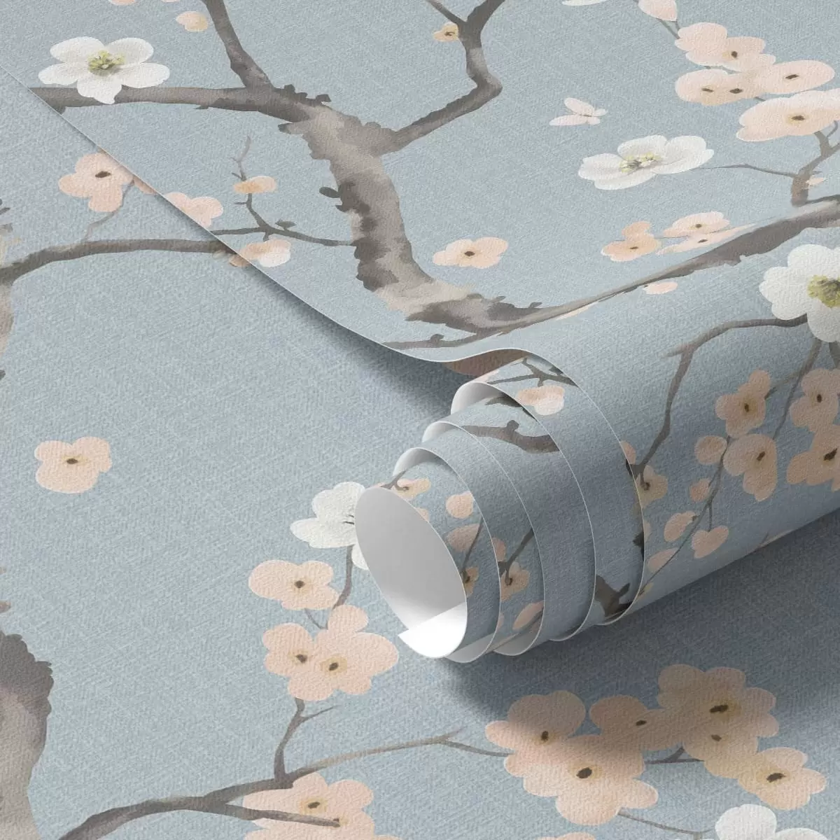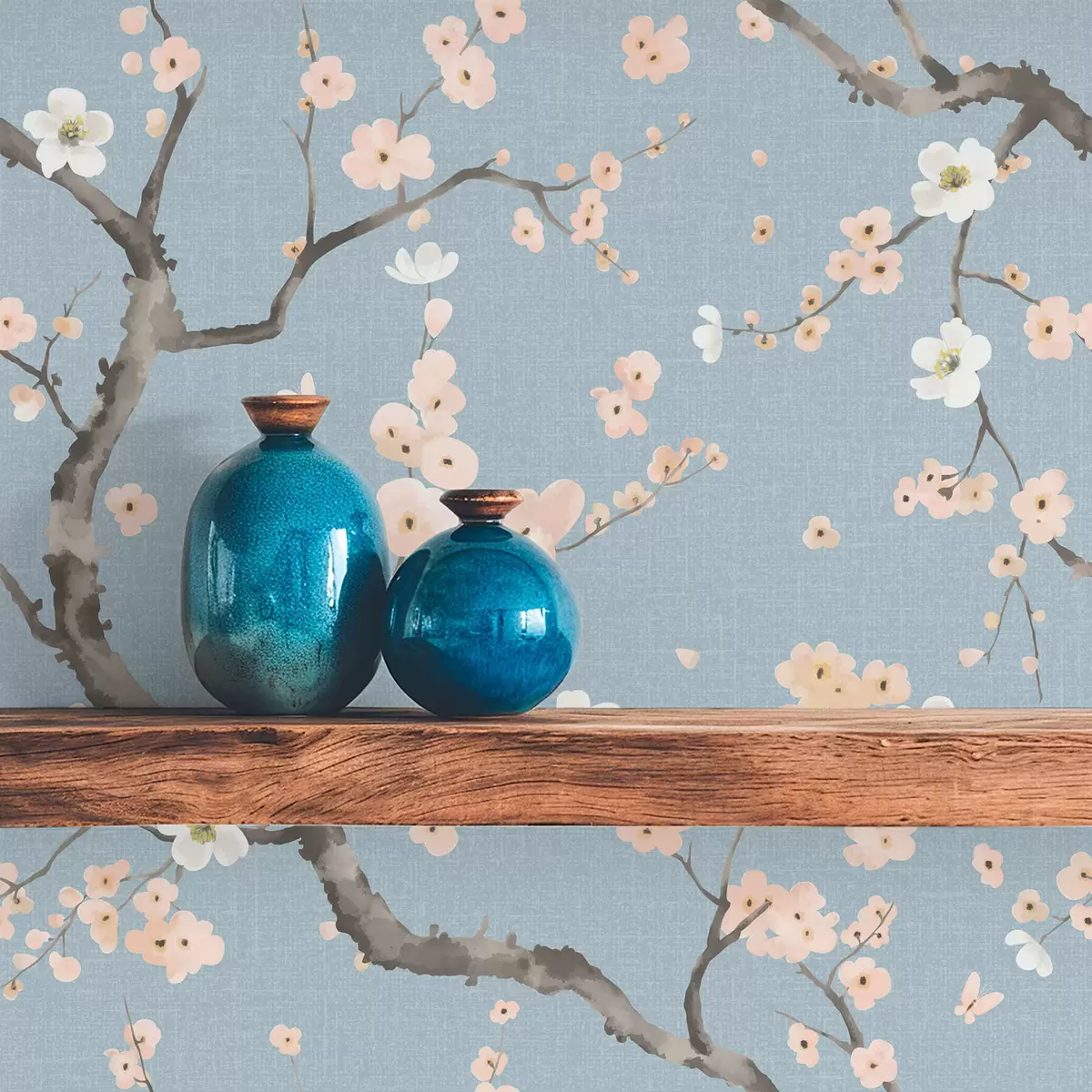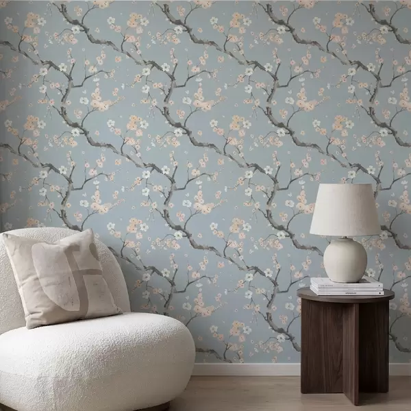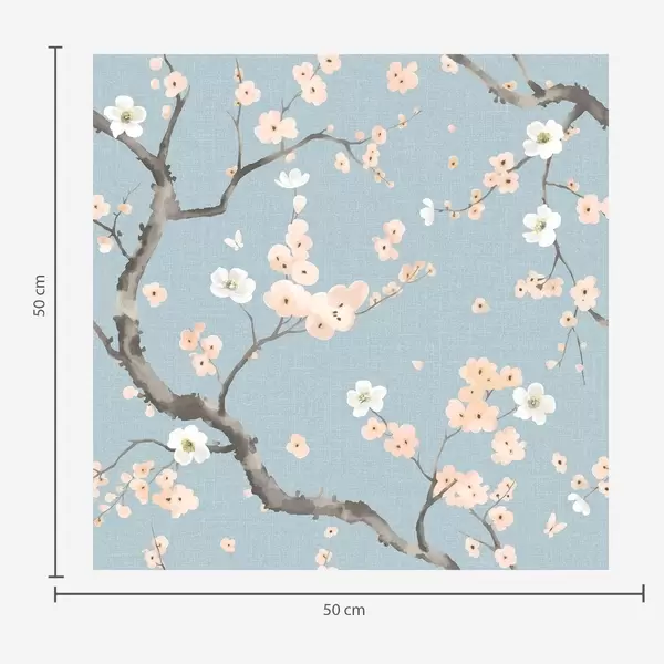 Tapete Blühende Zweige vor blauem Hintergrund Nr. a01155