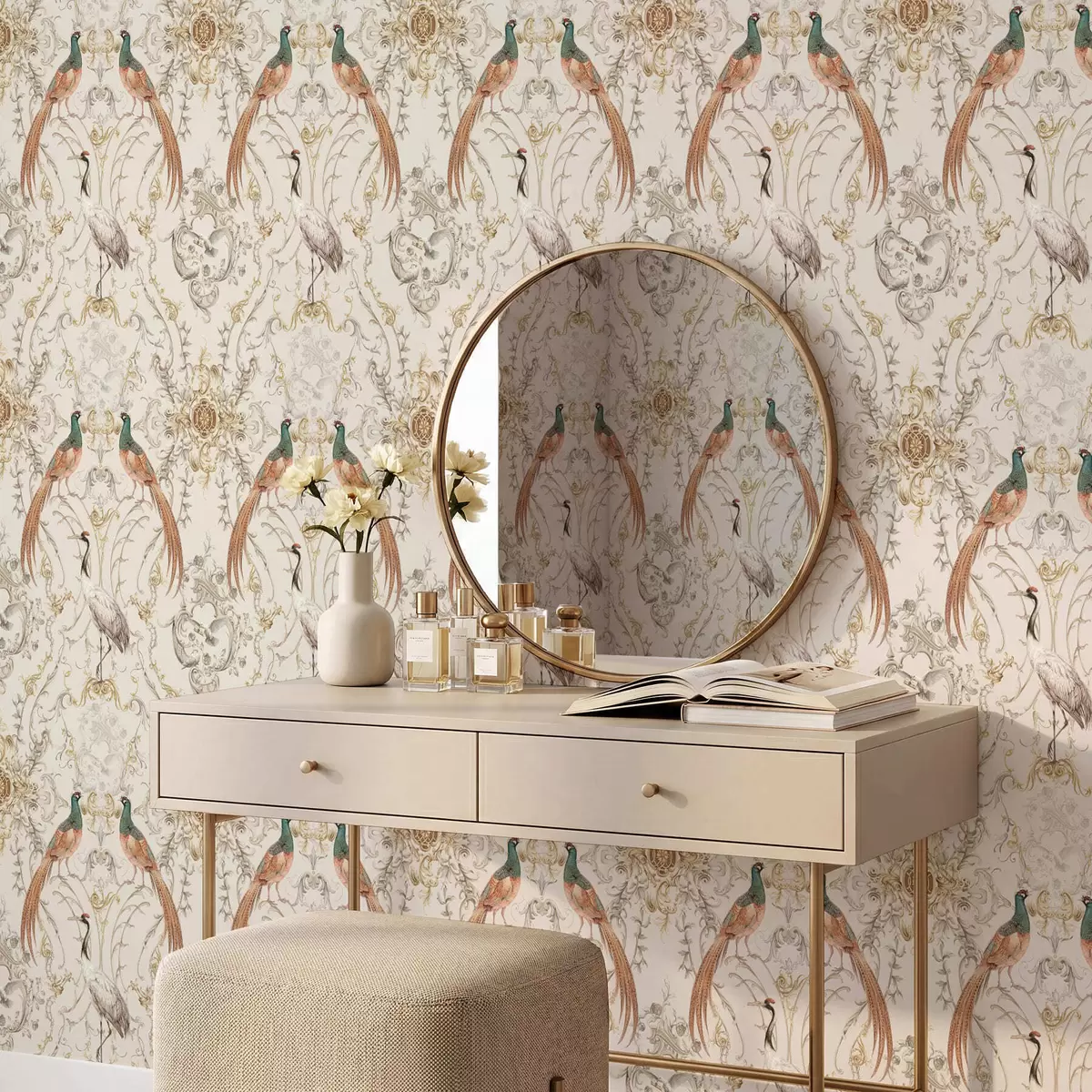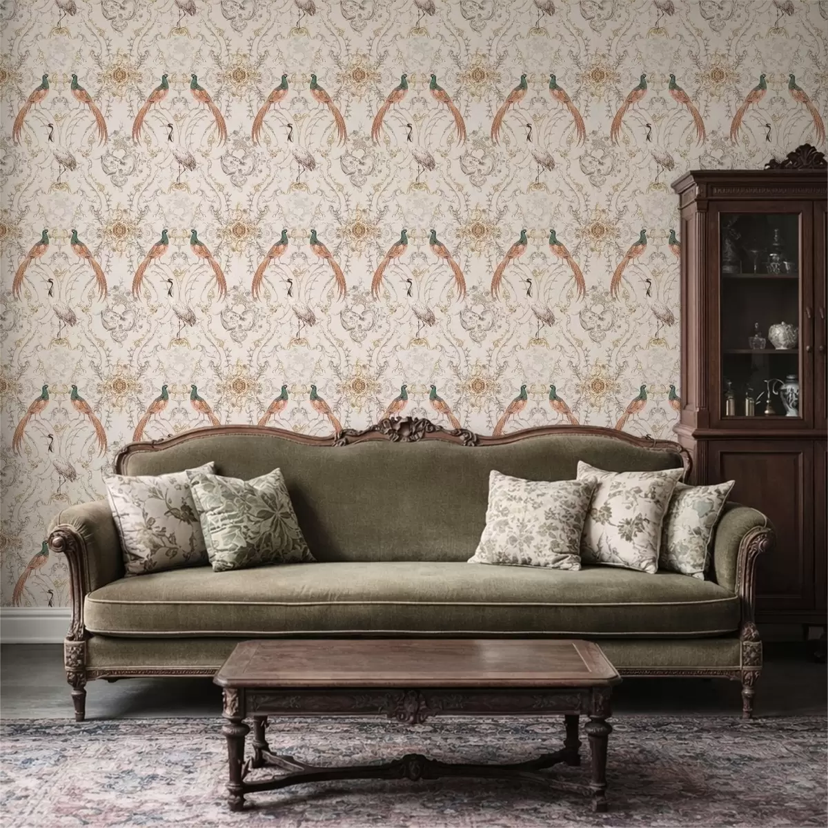 Tapete Ornamentmuster mit Vögeln und Motiven Nr. a01156