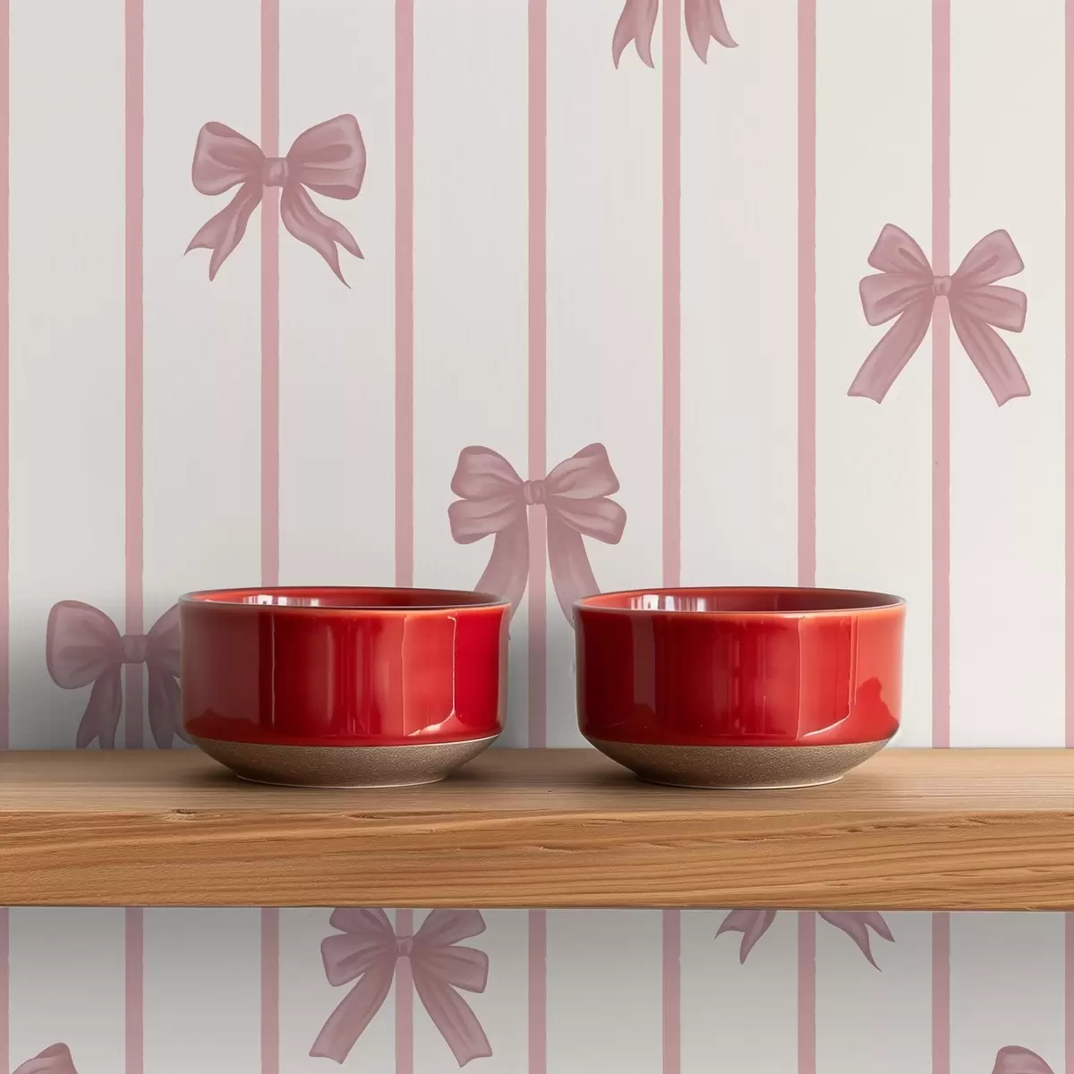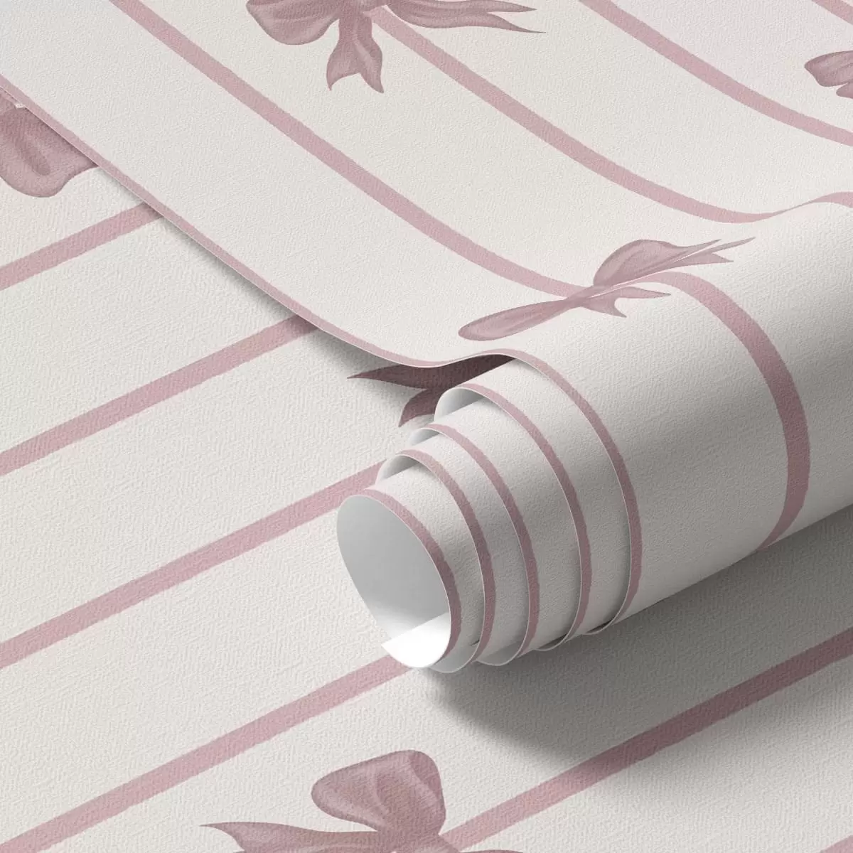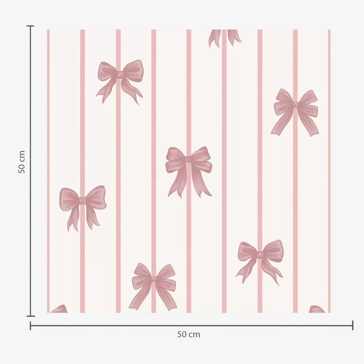 Tapete Rosa Schleifen auf vertikalen Streifen vor hellem Hintergrund Nr. a01162