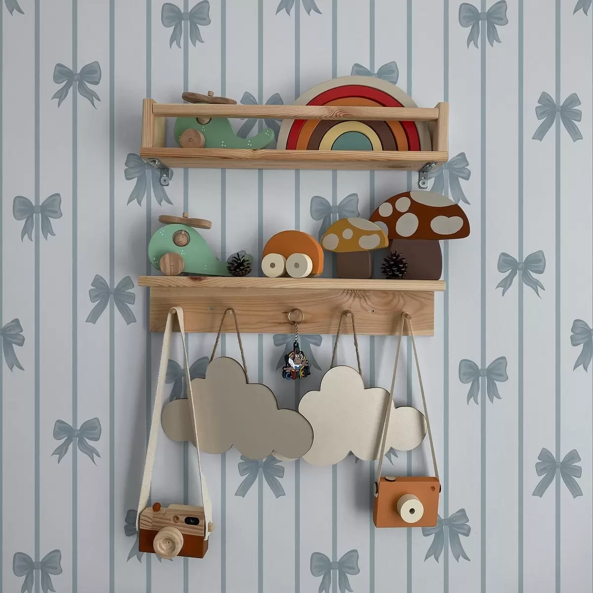 Tapete Blaue Schleifen auf gestreiftem hellem Hintergrund Nr. a01162v2