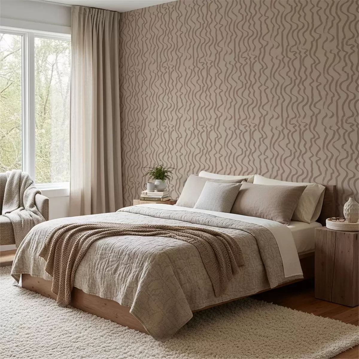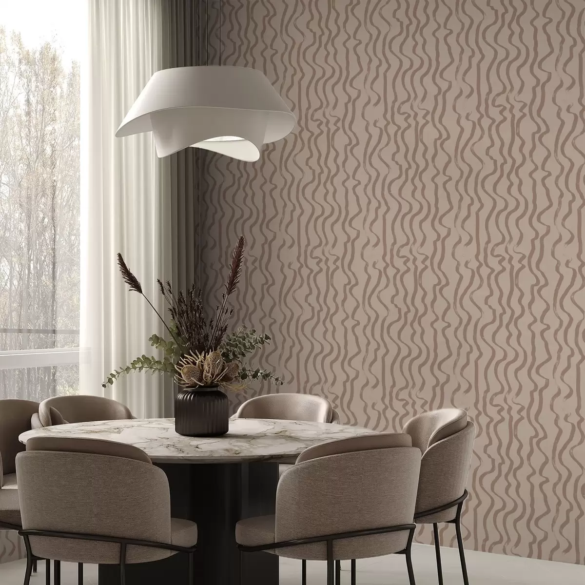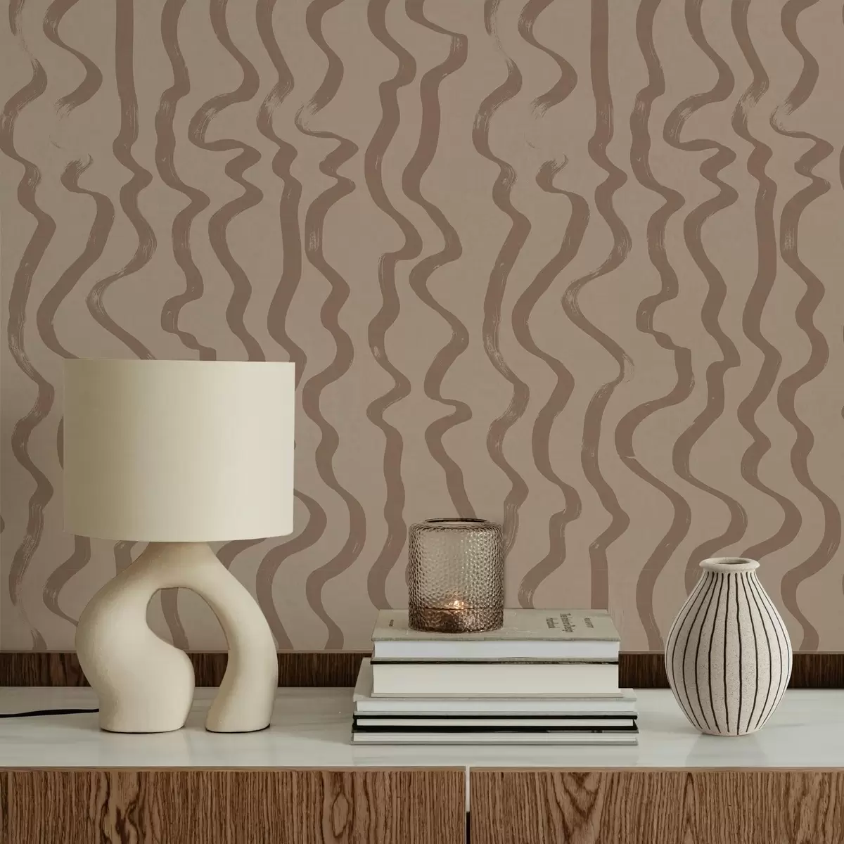 Tapete Beigefarbene Wellenlinien auf hellem Hintergrund Nr. a01168v2