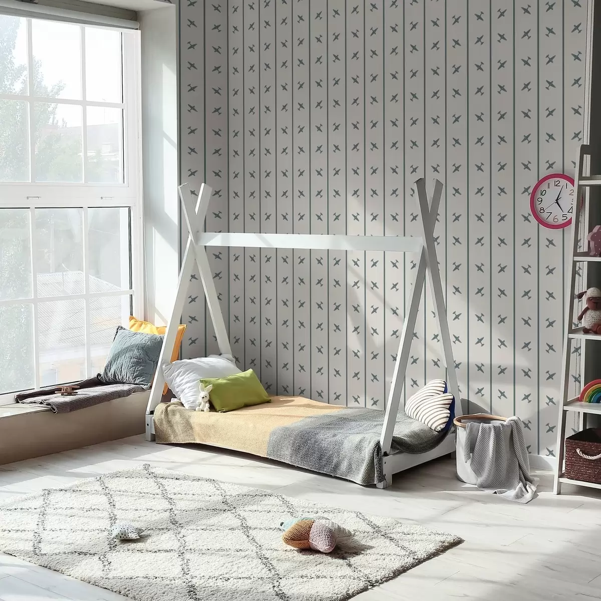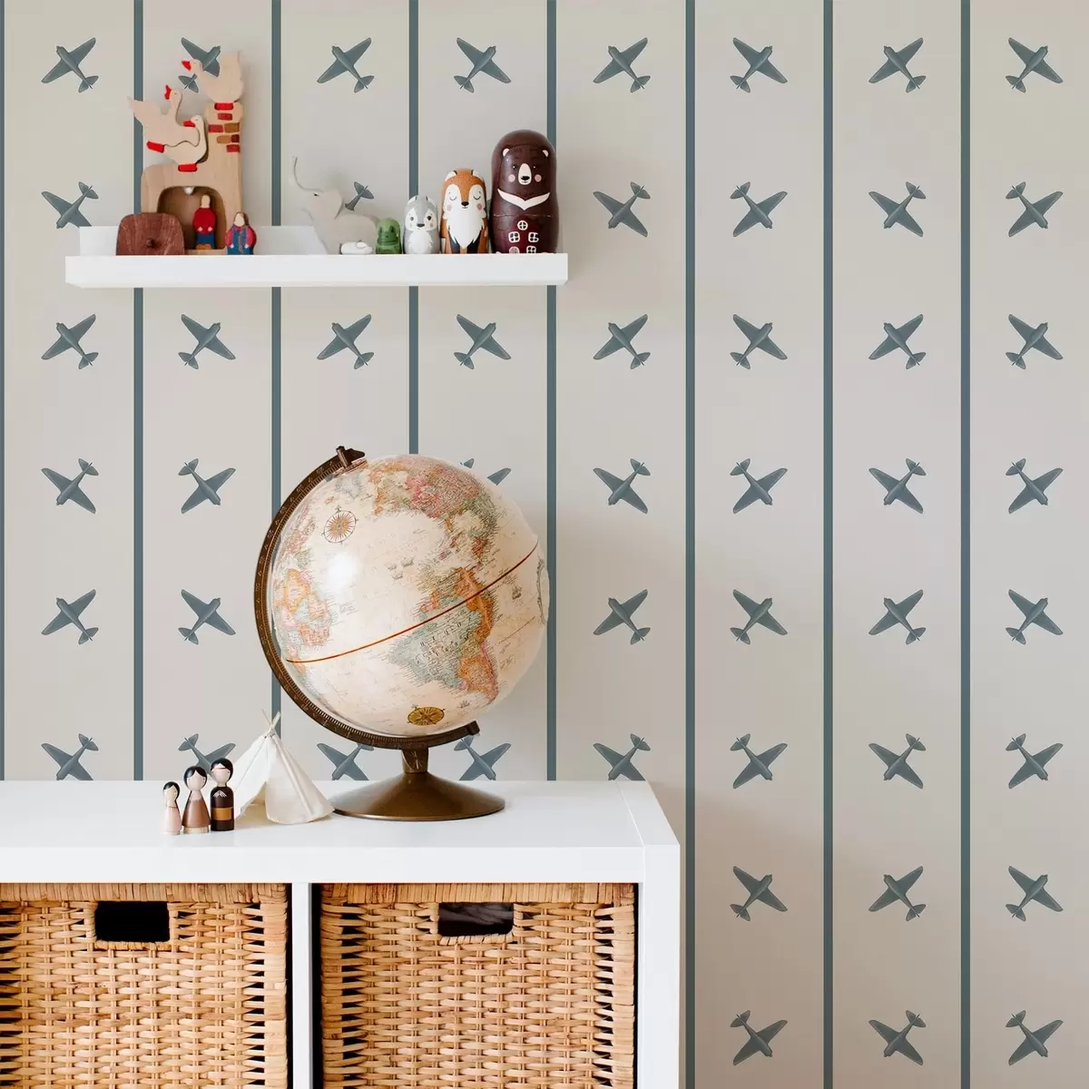 Tapete Flugzeuge mit Streifenmuster und blauen Akzenten Nr. a01169