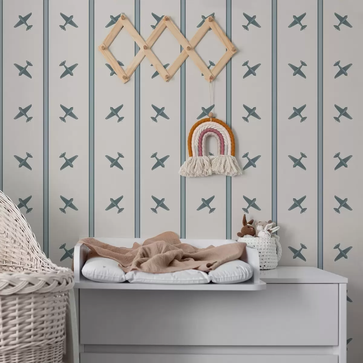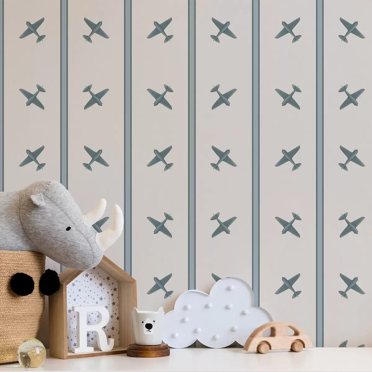 Tapete Flugzeuge mit blau gestreiftem Muster Nr. a01170