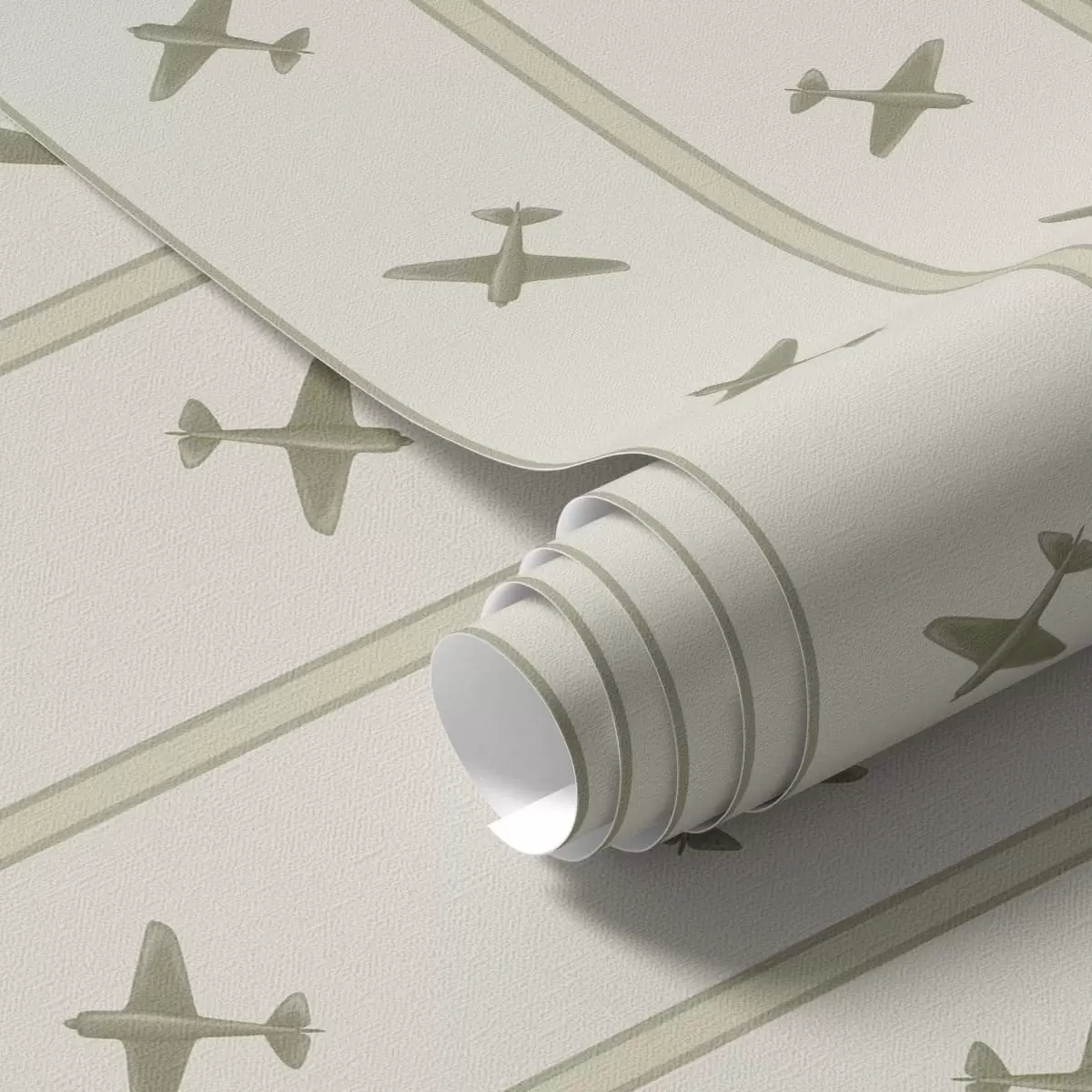 Tapete Flugzeuge mit Streifenmuster in Olivtönen Nr. a01170v2