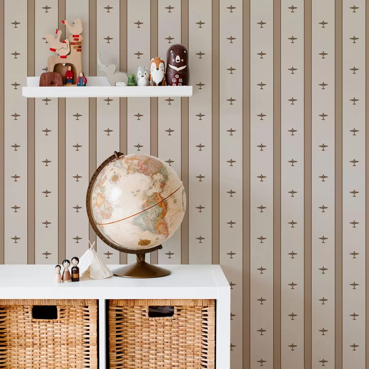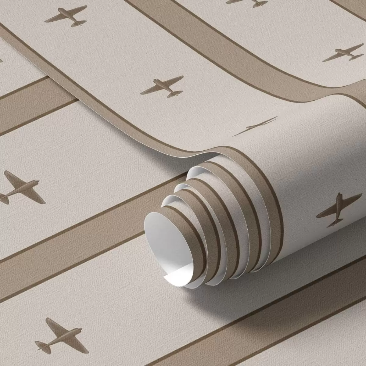 Tapete Kleine Flugzeuge mit Streifen auf braunem Hintergrund Nr. a01171v2