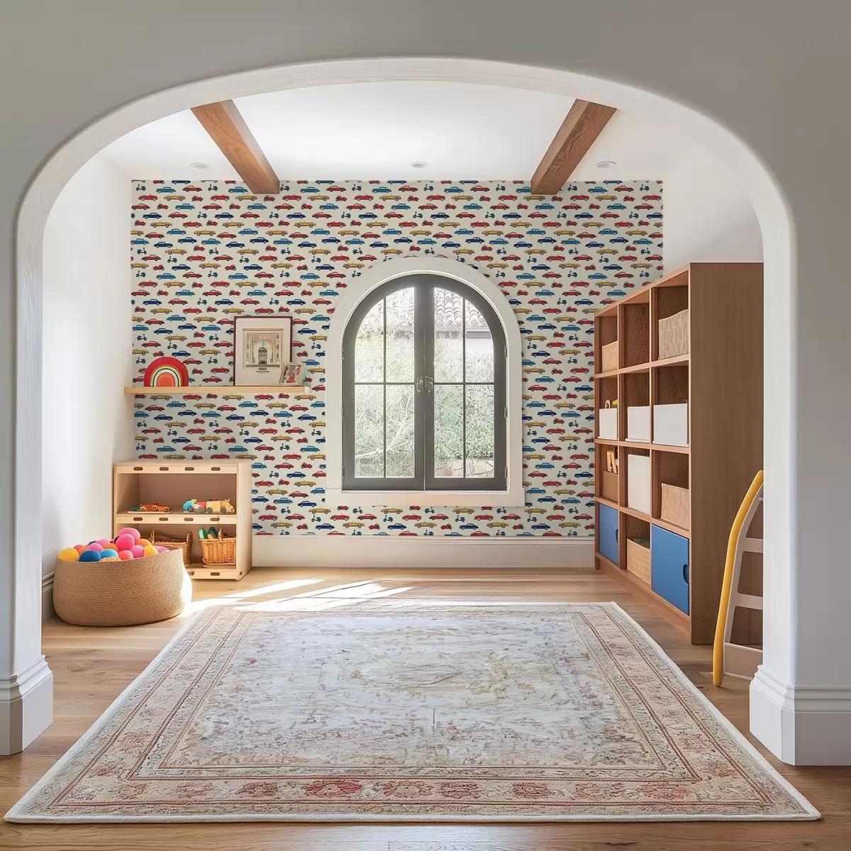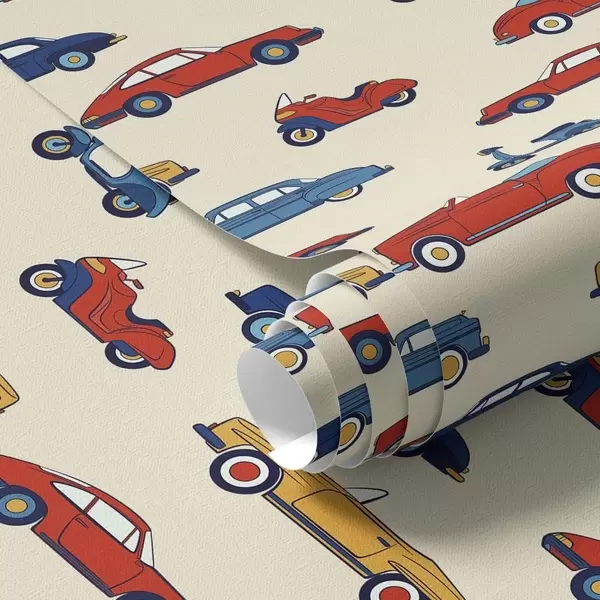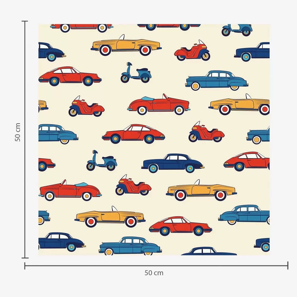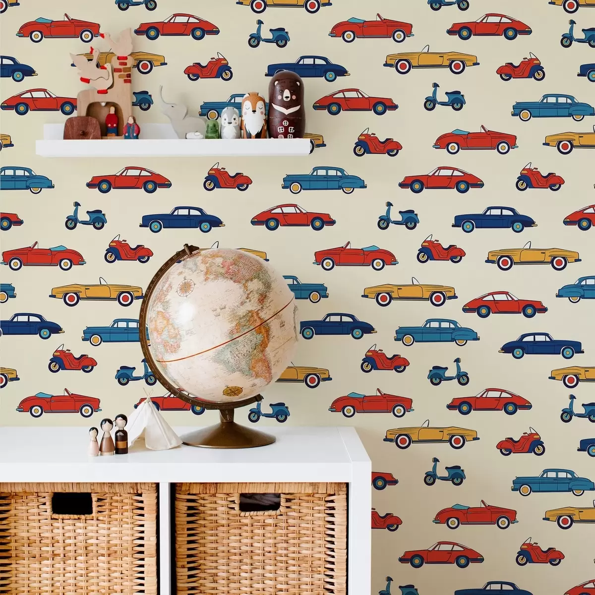 Tapete Farbenfrohe Retro-Autos und -Roller vor hellem Hintergrund Nr. a01172v1
