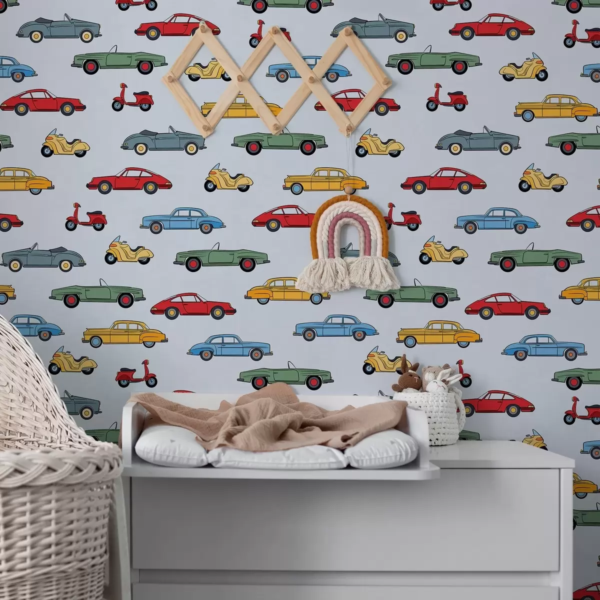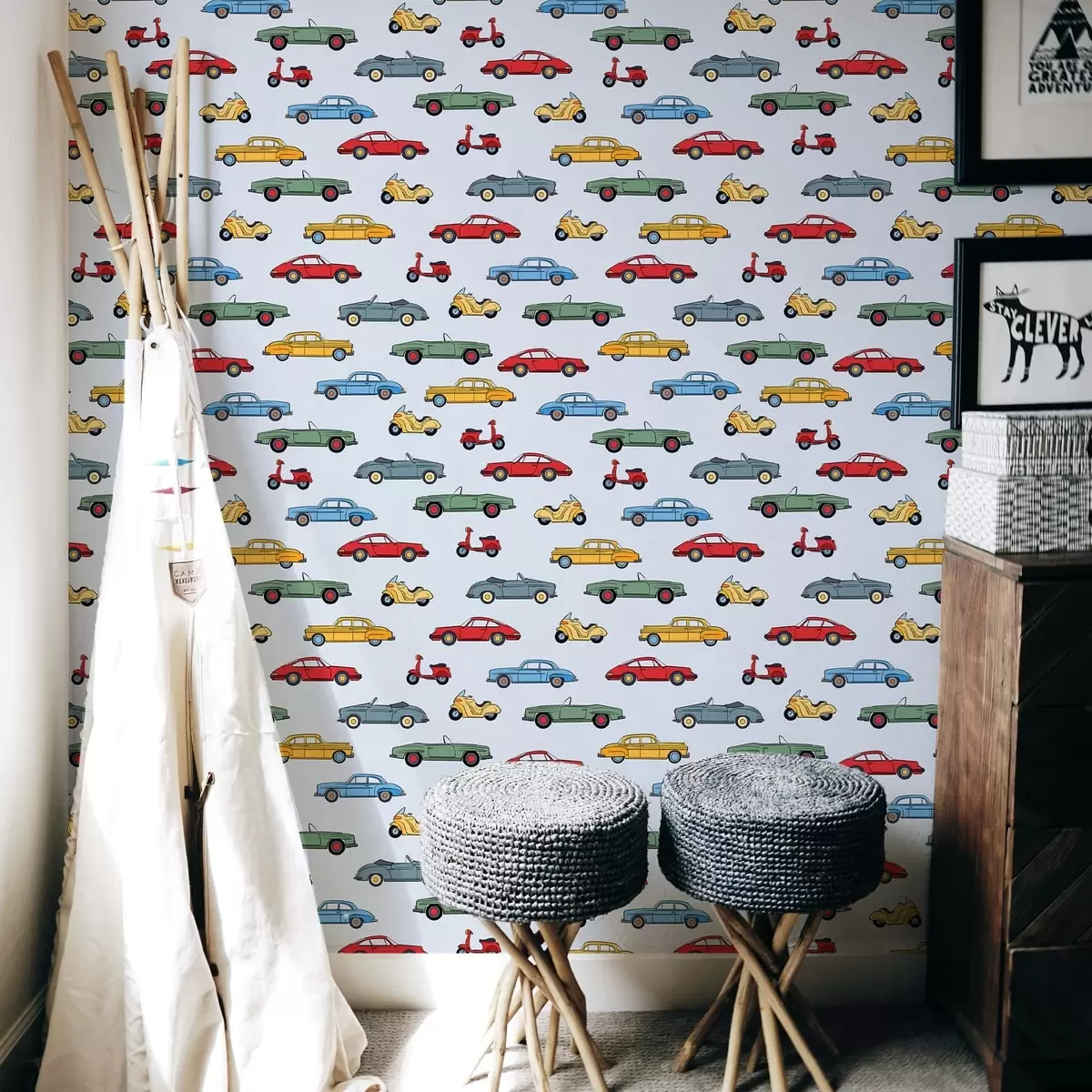 Tapete Oldtimer und Motorroller vor blauem Hintergrund Nr. a01172v2