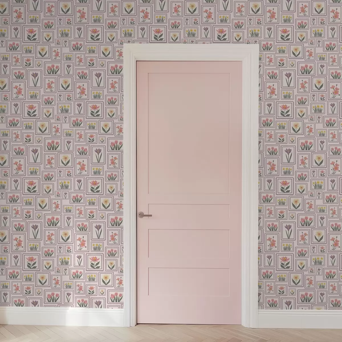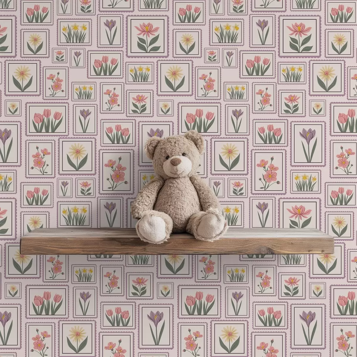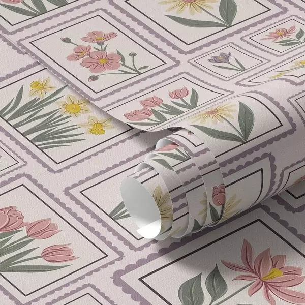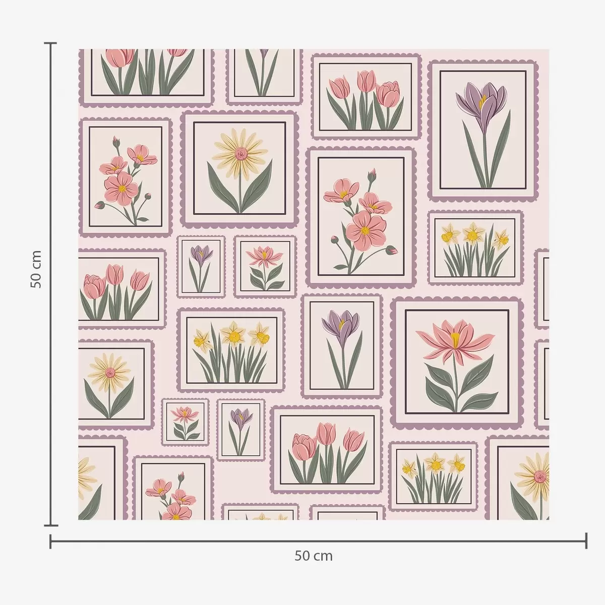 Tapete Gerahmte Blumenillustrationen in Fliederfarben Nr. a01173v2