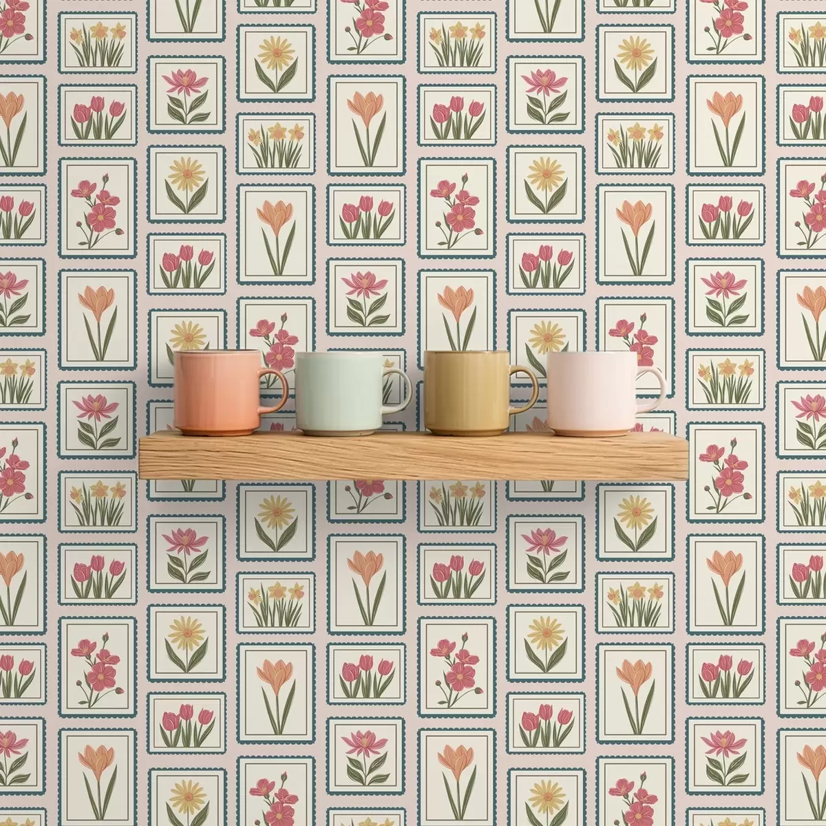 Tapete Gerahmte Blumenillustrationen mit Rahmen Nr. a01174