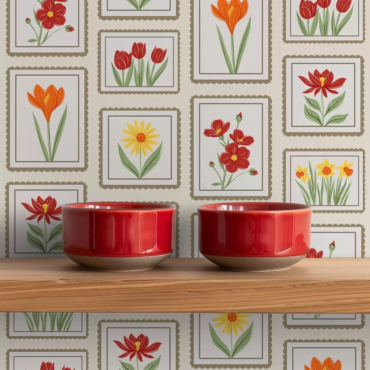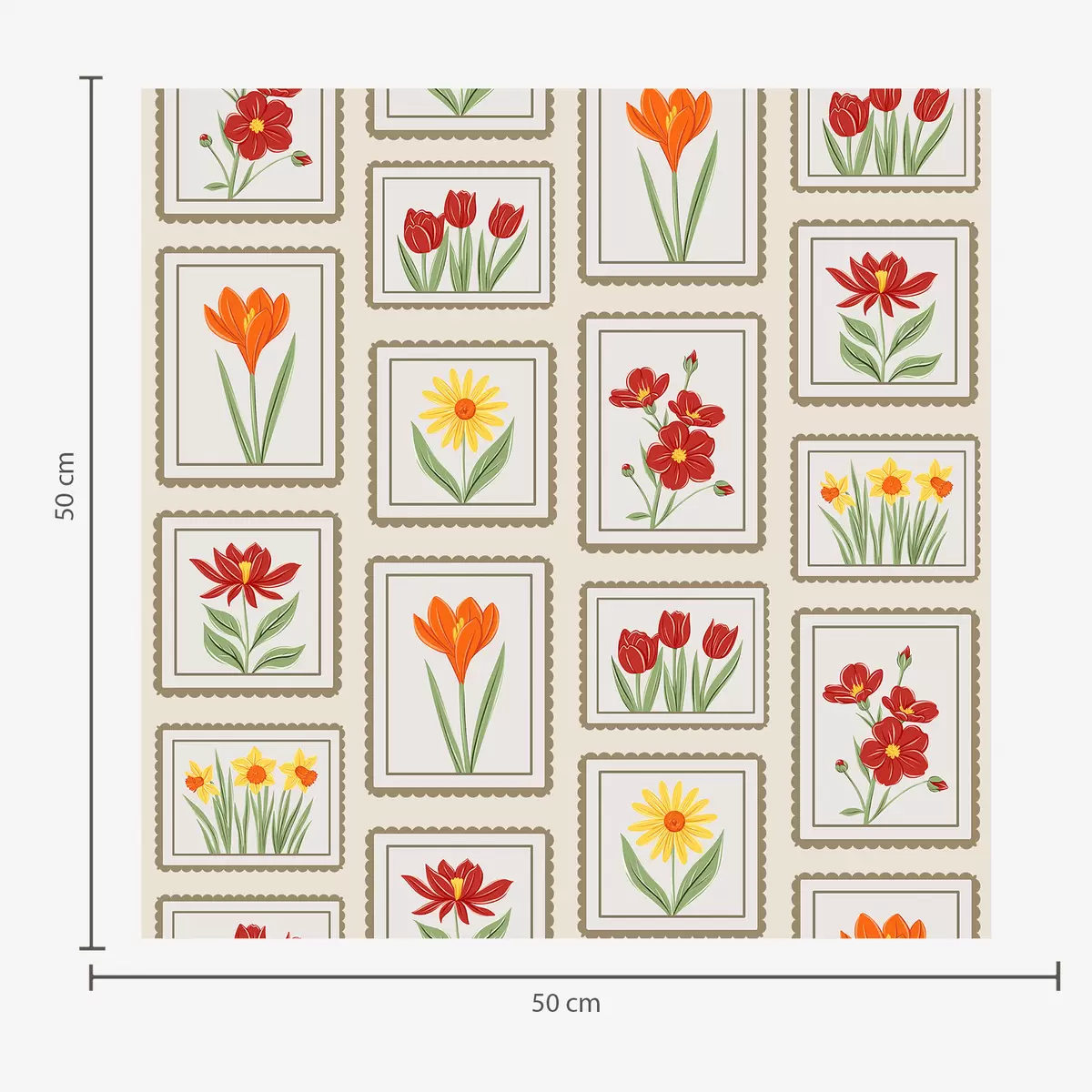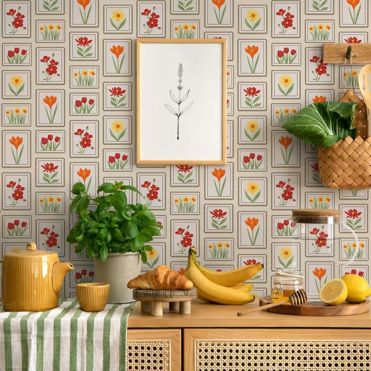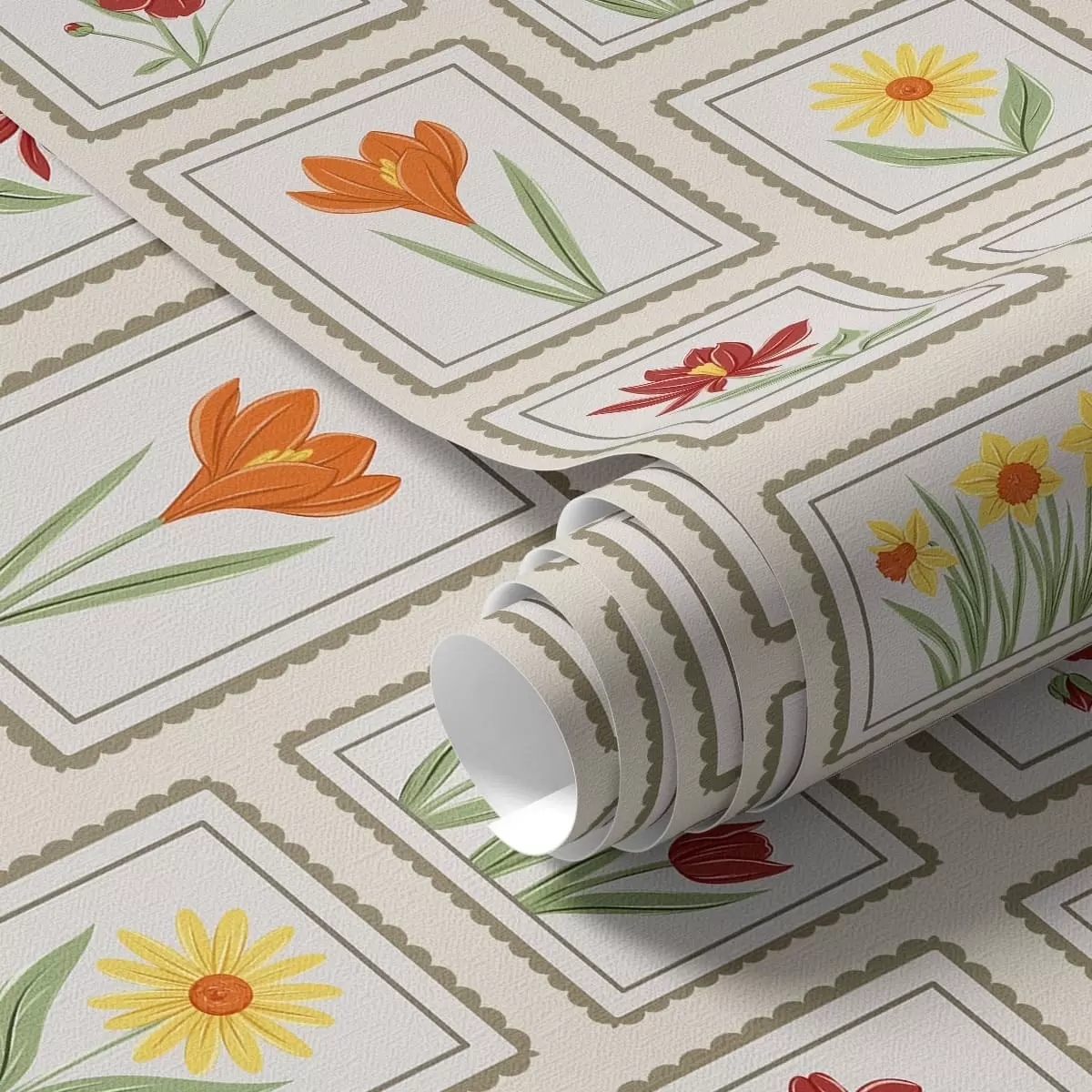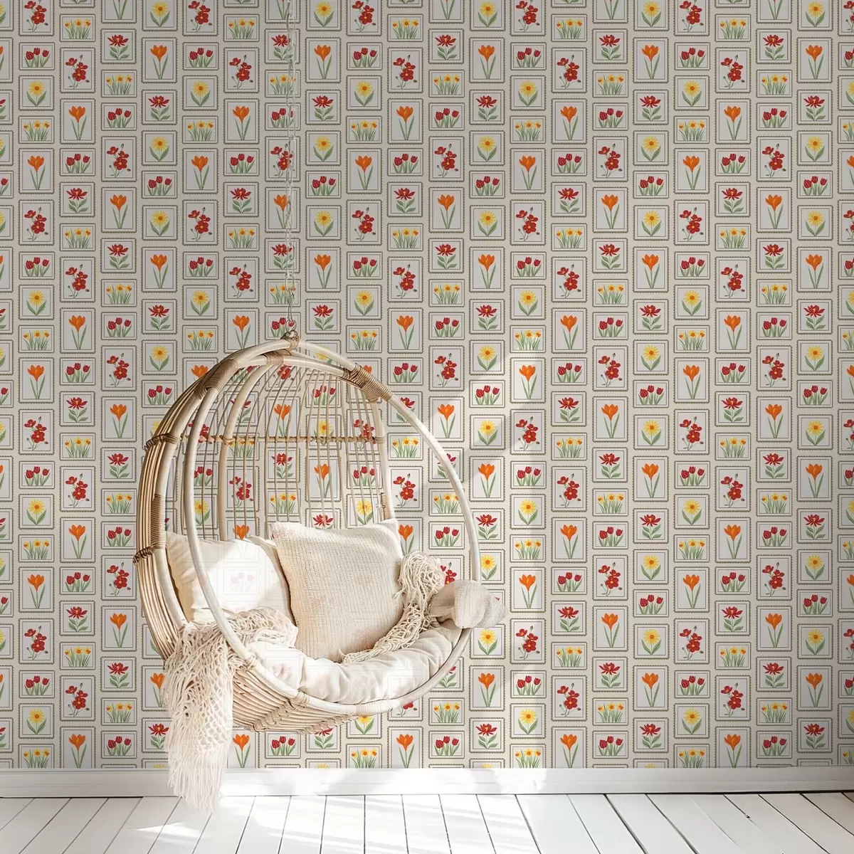Tapete Farbenfrohe, gerahmte Blumenillustrationen Nr. a01174v1