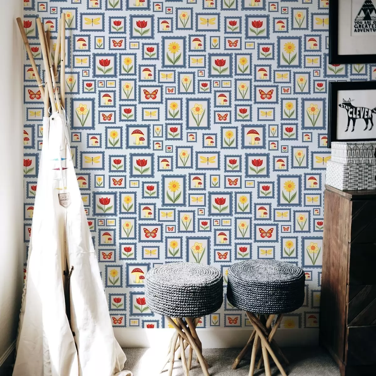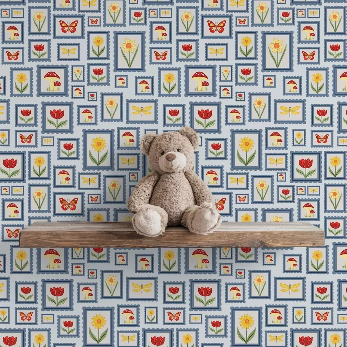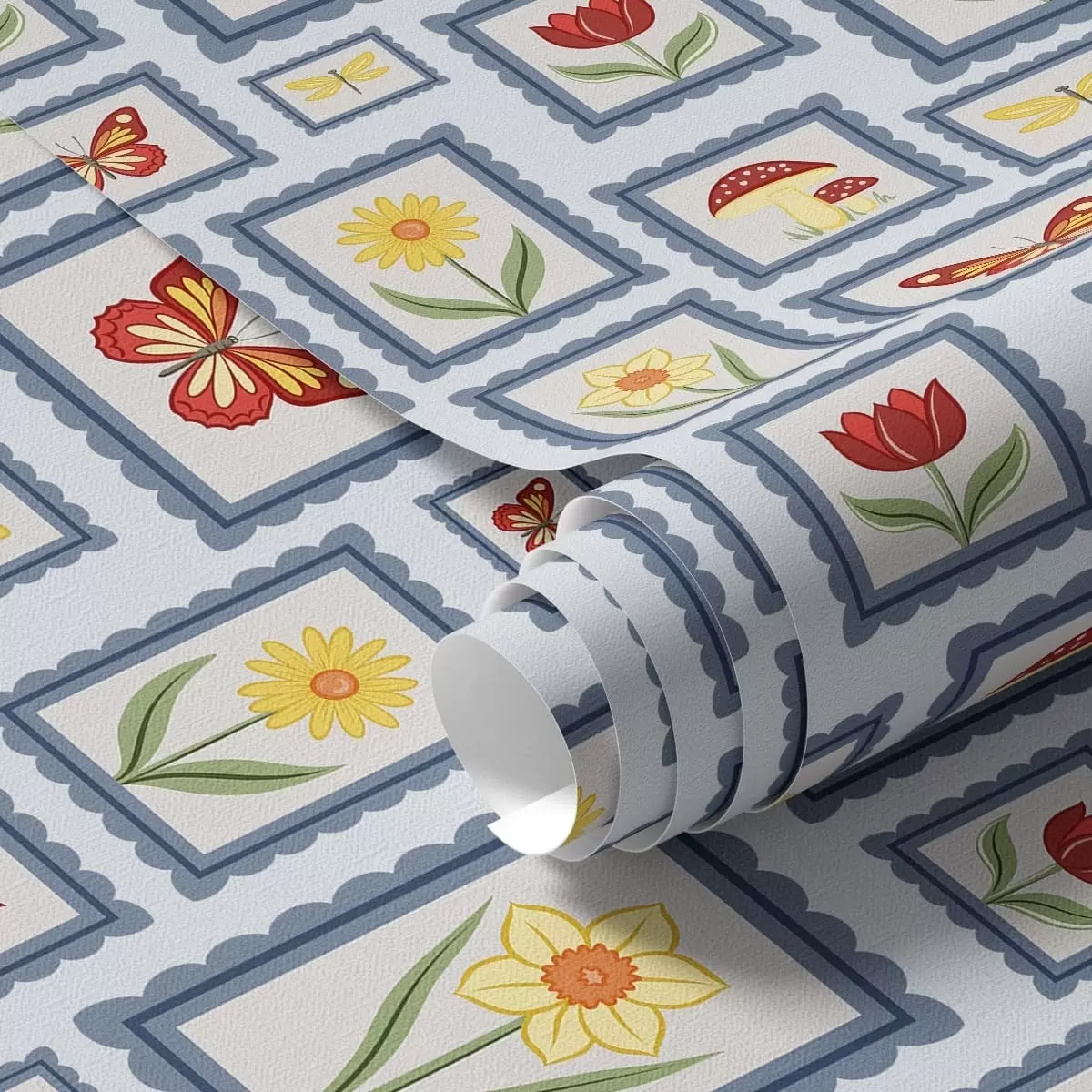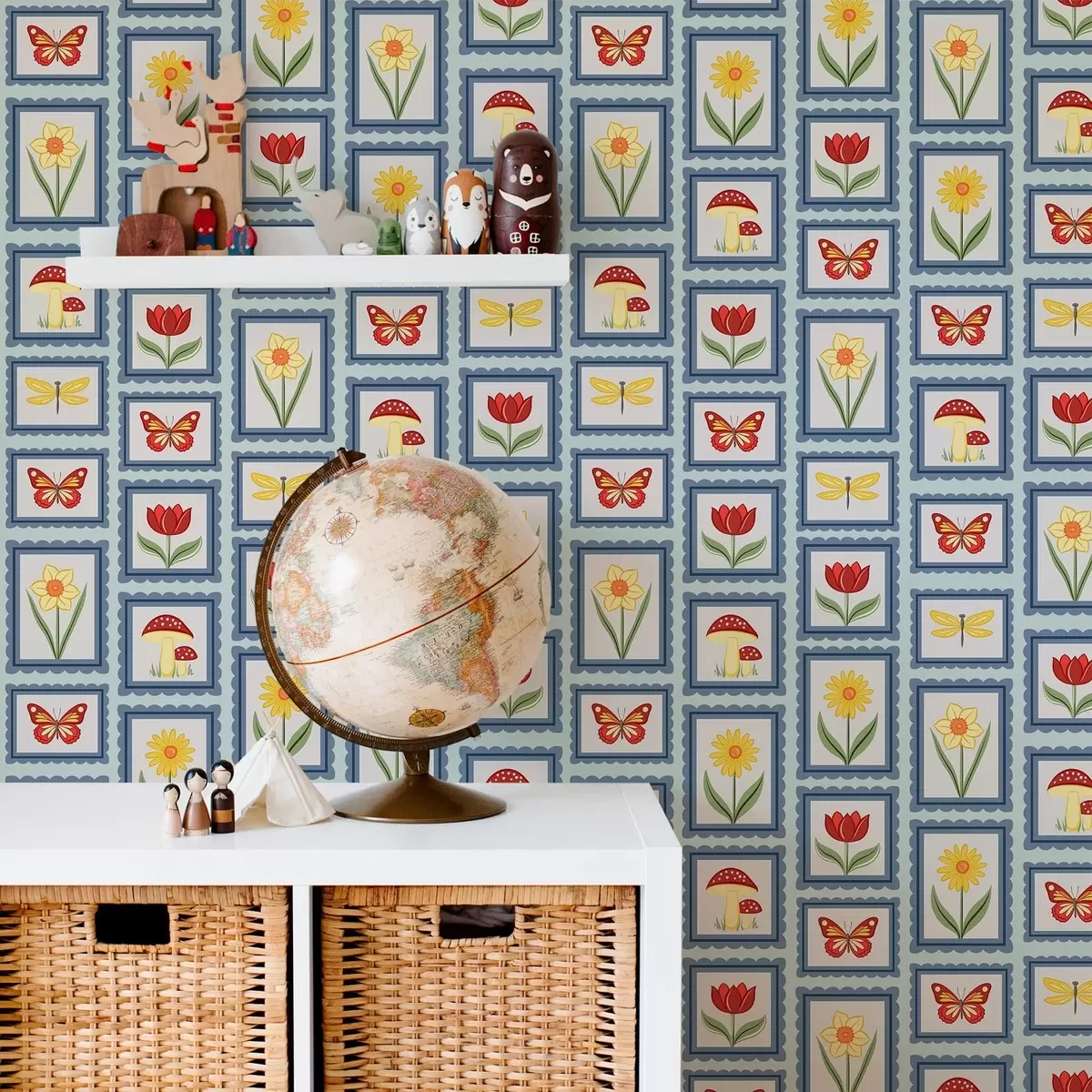Tapete Gerahmte Illustrationen auf blauem Hintergrund Nr. a01176