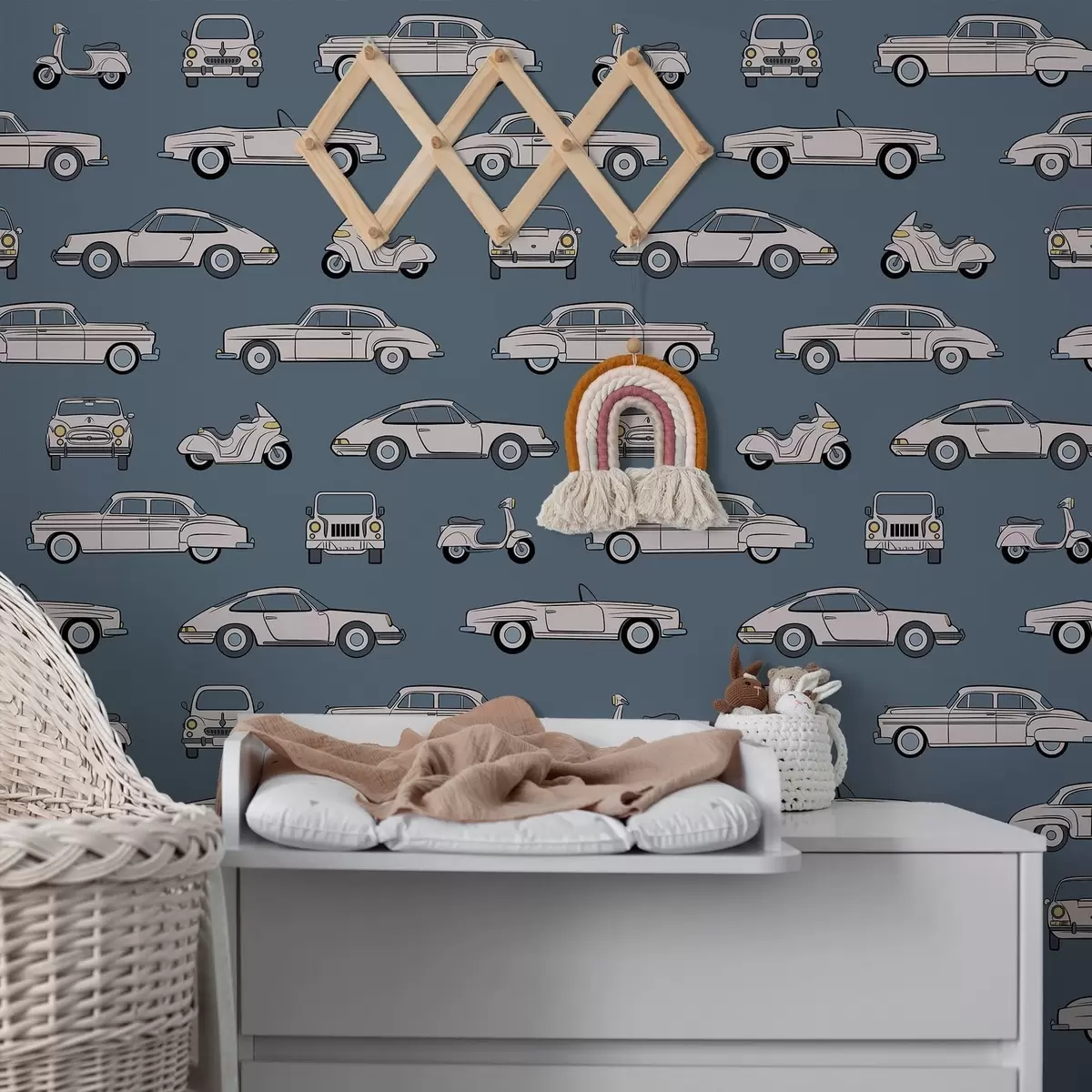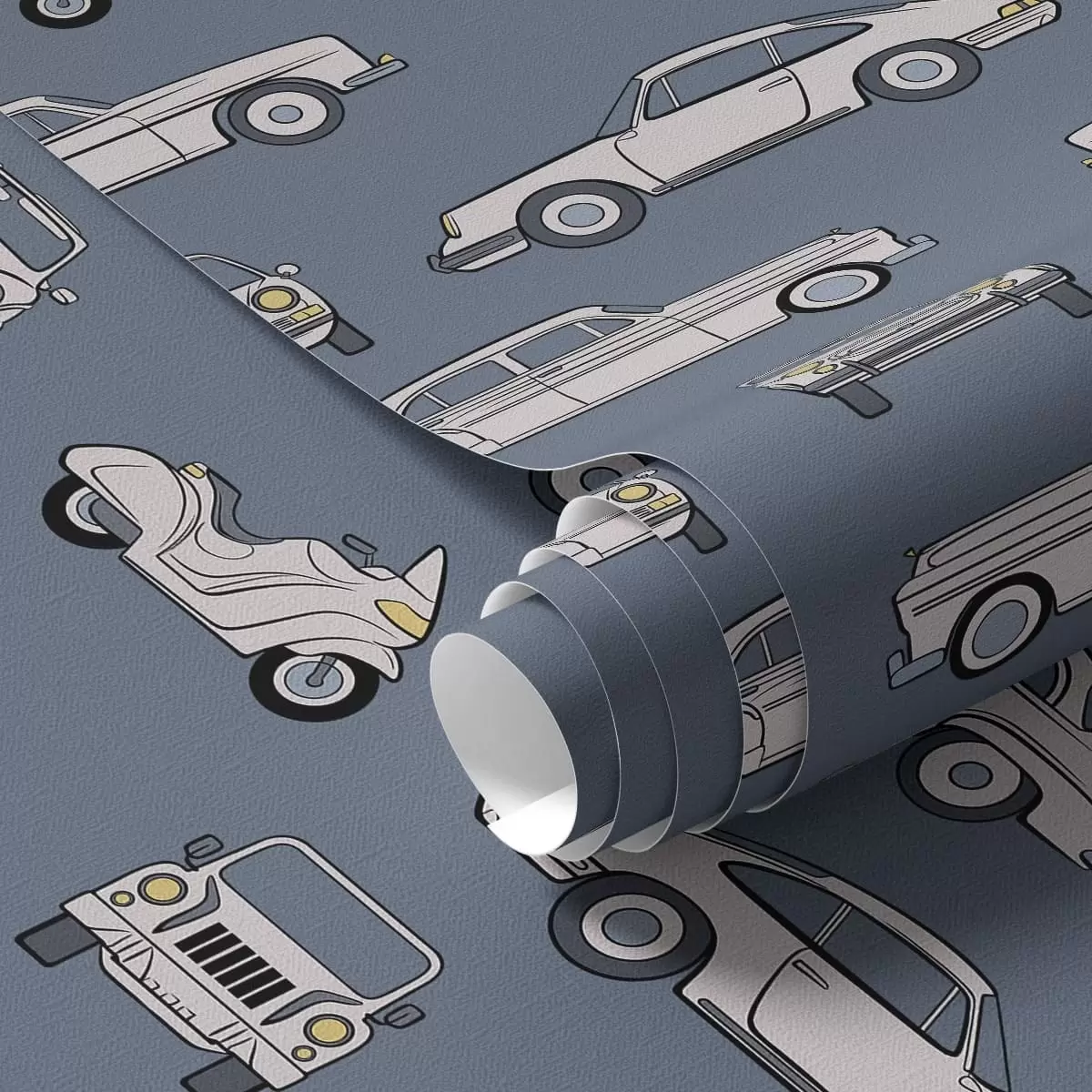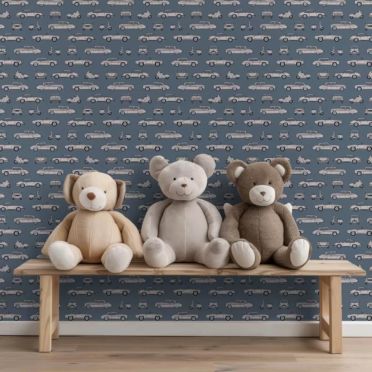 Tapete Oldtimer und Motorroller vor blauem Hintergrund Nr. a01178