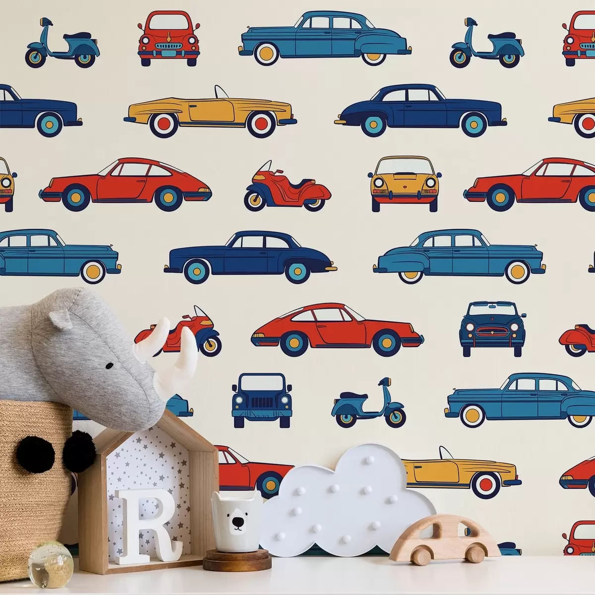 Tapete Farbenfrohe Retro-Autos und -Roller Nr. a01178v2