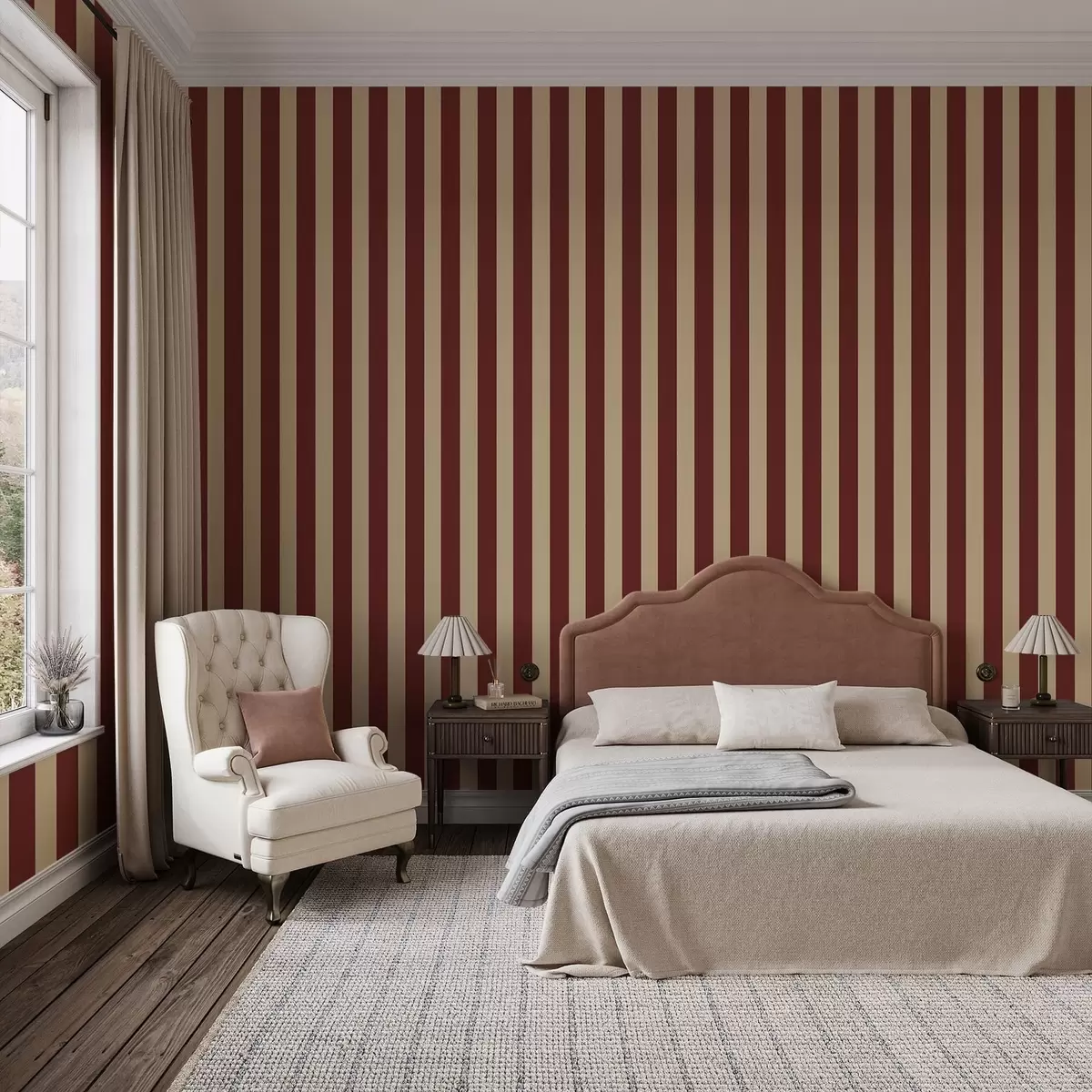 Tapete Rote und beige vertikale Streifen Nr. a01179
