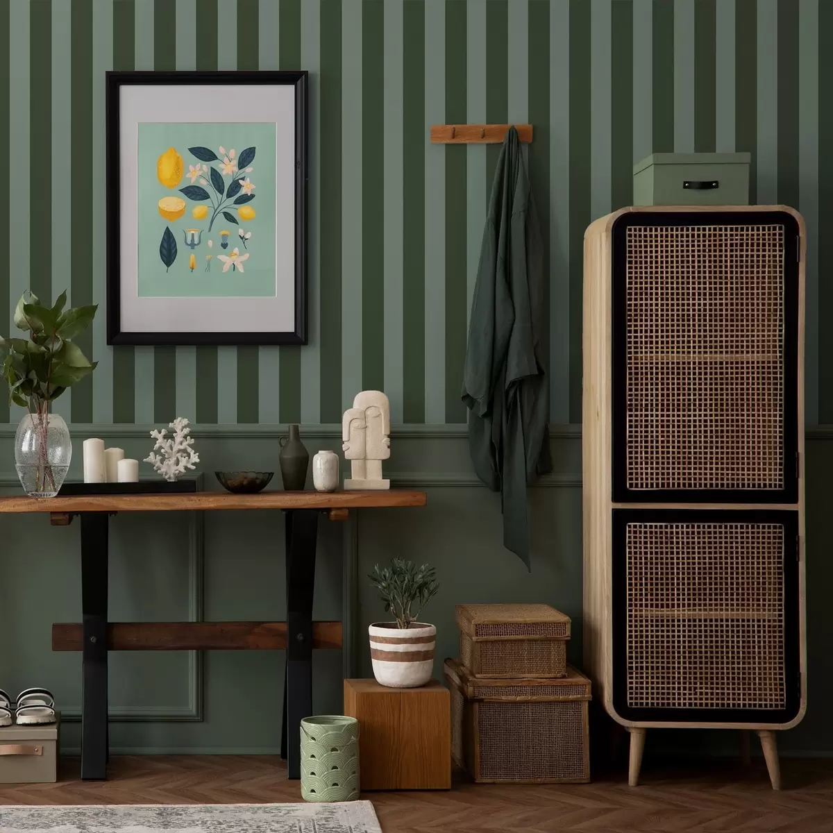 Tapete Dunkelgrüne und helle vertikale Streifen Nr. a01179v4