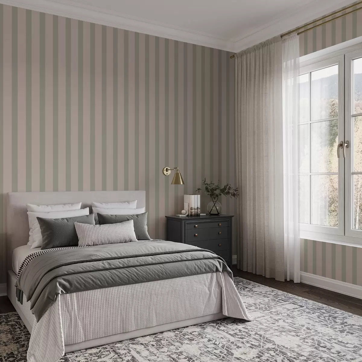 Tapete Grüne und beige vertikale Streifen Nr. a01180