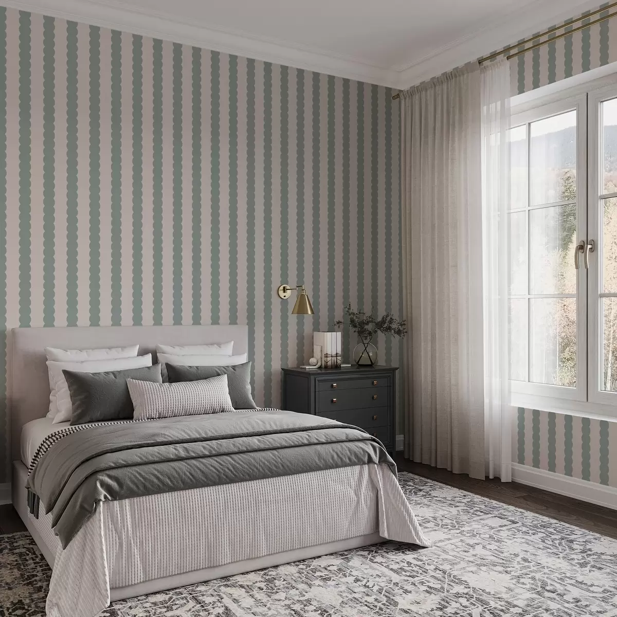 Tapete Olivgrüne Wellenstreifen im minimalistischen Stil Nr. a01182v1