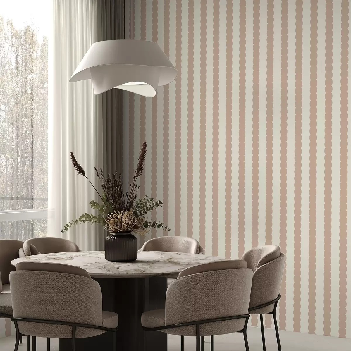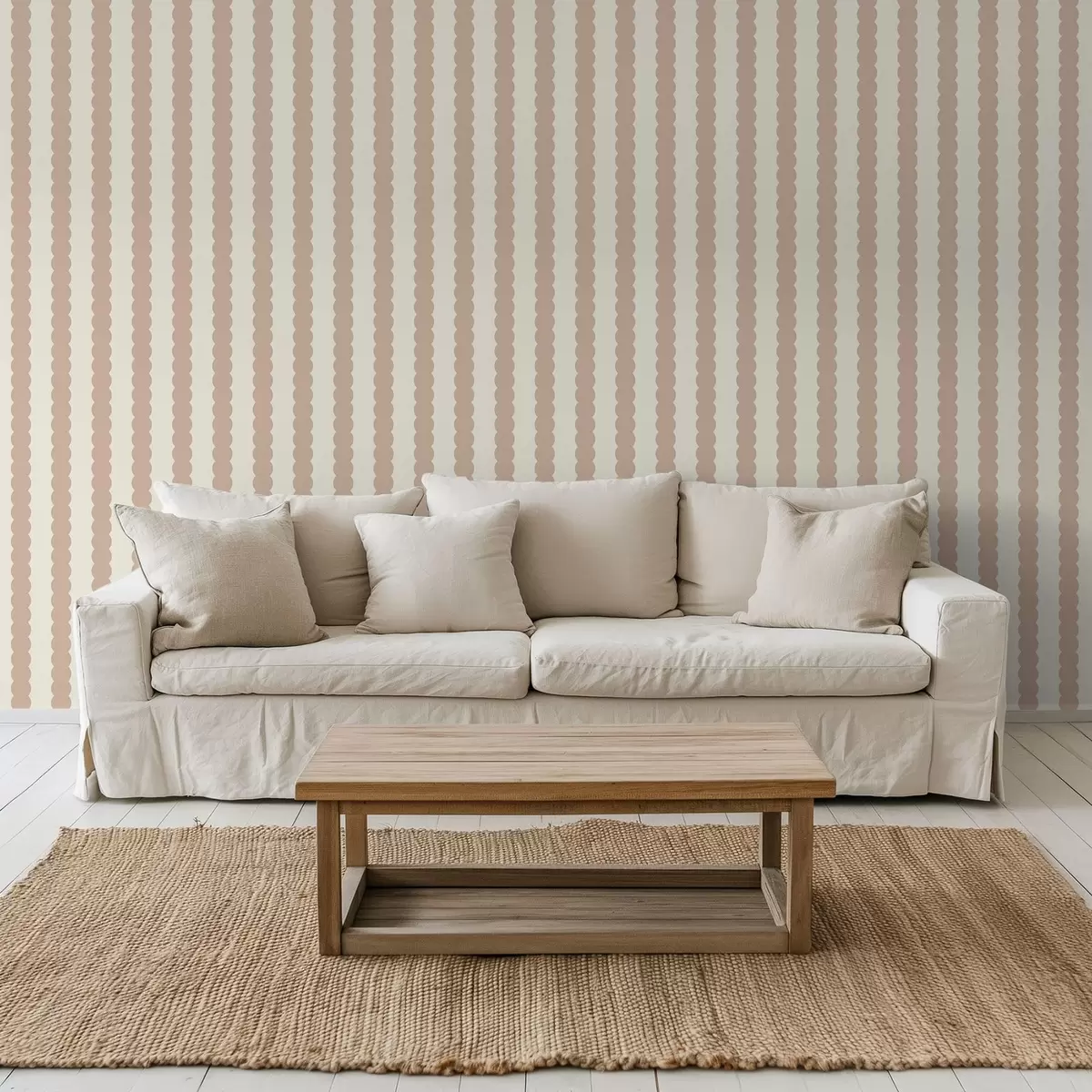 Tapete Beigefarbene Wellenstreifen im minimalistischen Stil Nr. a01182v2