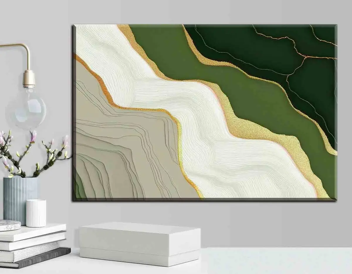 Gemälde Abstraktes Ölgemälde mit schwarzen, weißen, grünen und grauen Farben Art. s35427