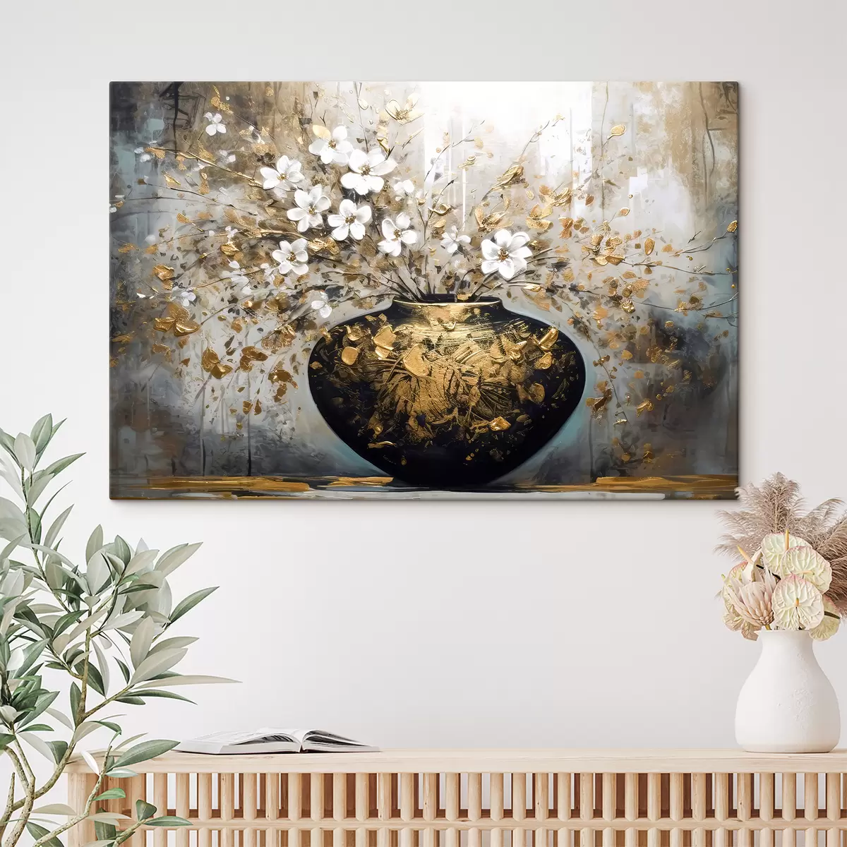 Gemälde Zweige weißer Blumen in einer Vase Art. s35377