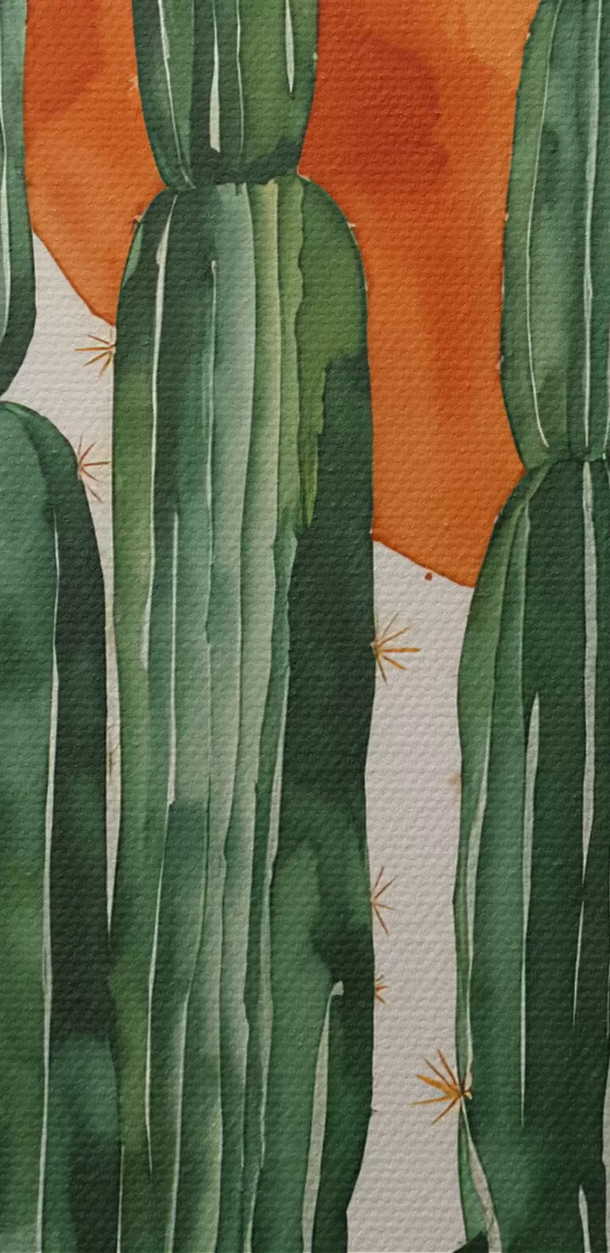 Gemälde Kaktus in der Wüste im Gegenlicht der Sonne in Aquarell Art. s36269