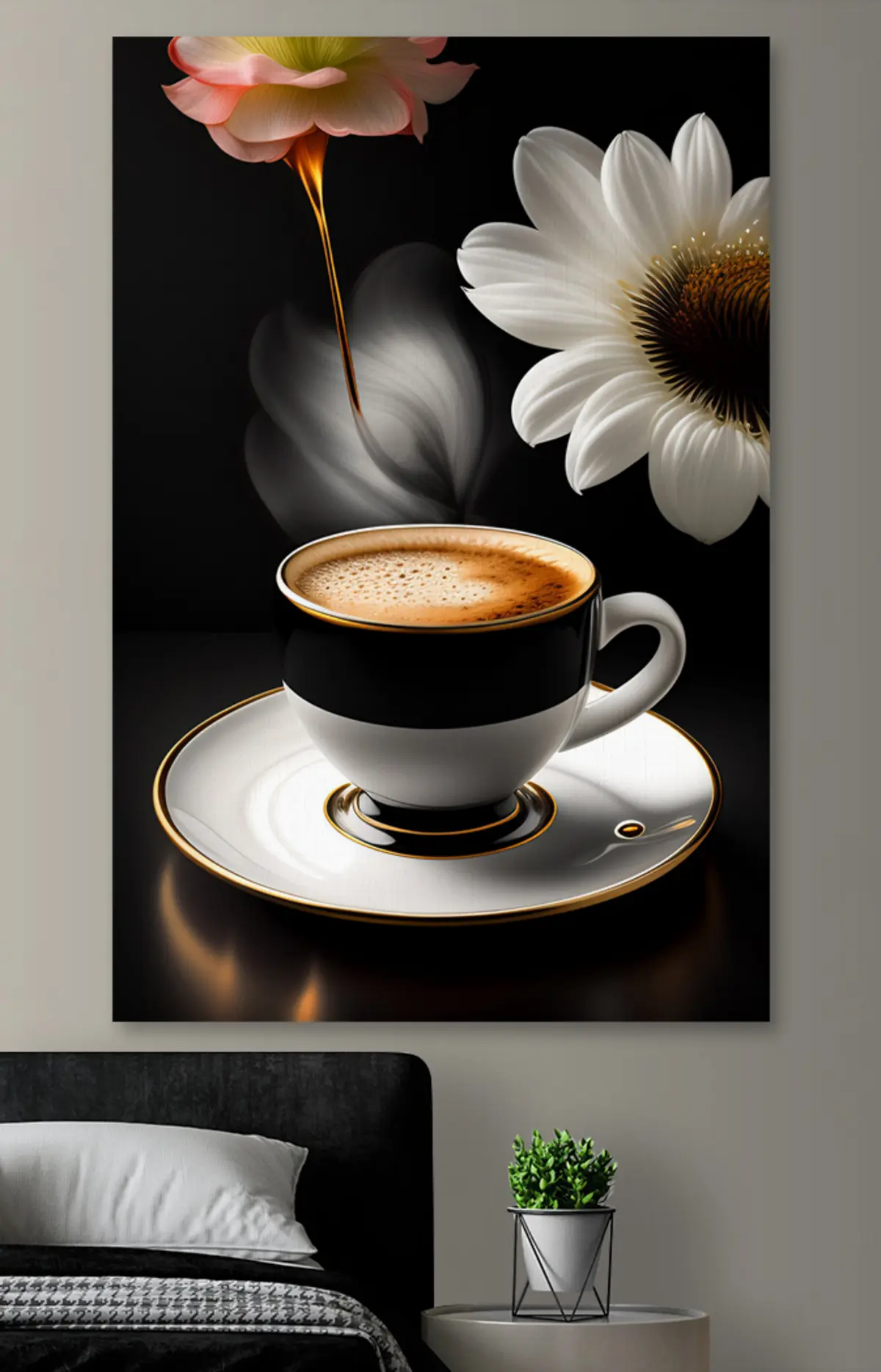 Gemälde Eine Tasse Kaffee mit Blumen Art. s32167