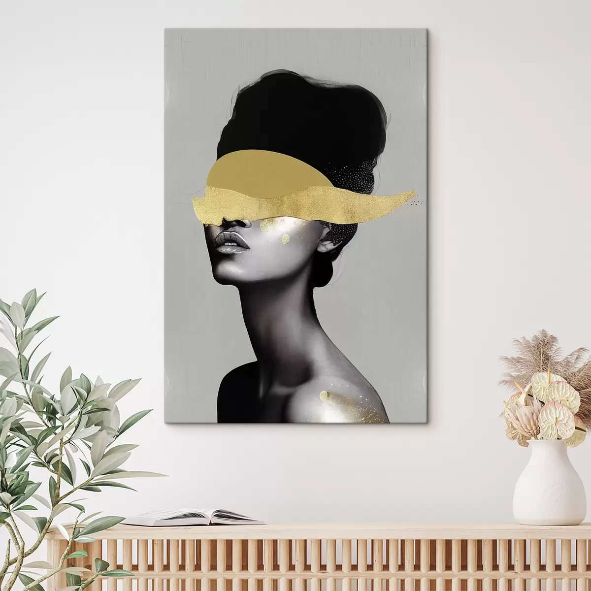 Gemälde Bild einer jungen Frau mit goldener Farbe im Gesicht Art. s34862