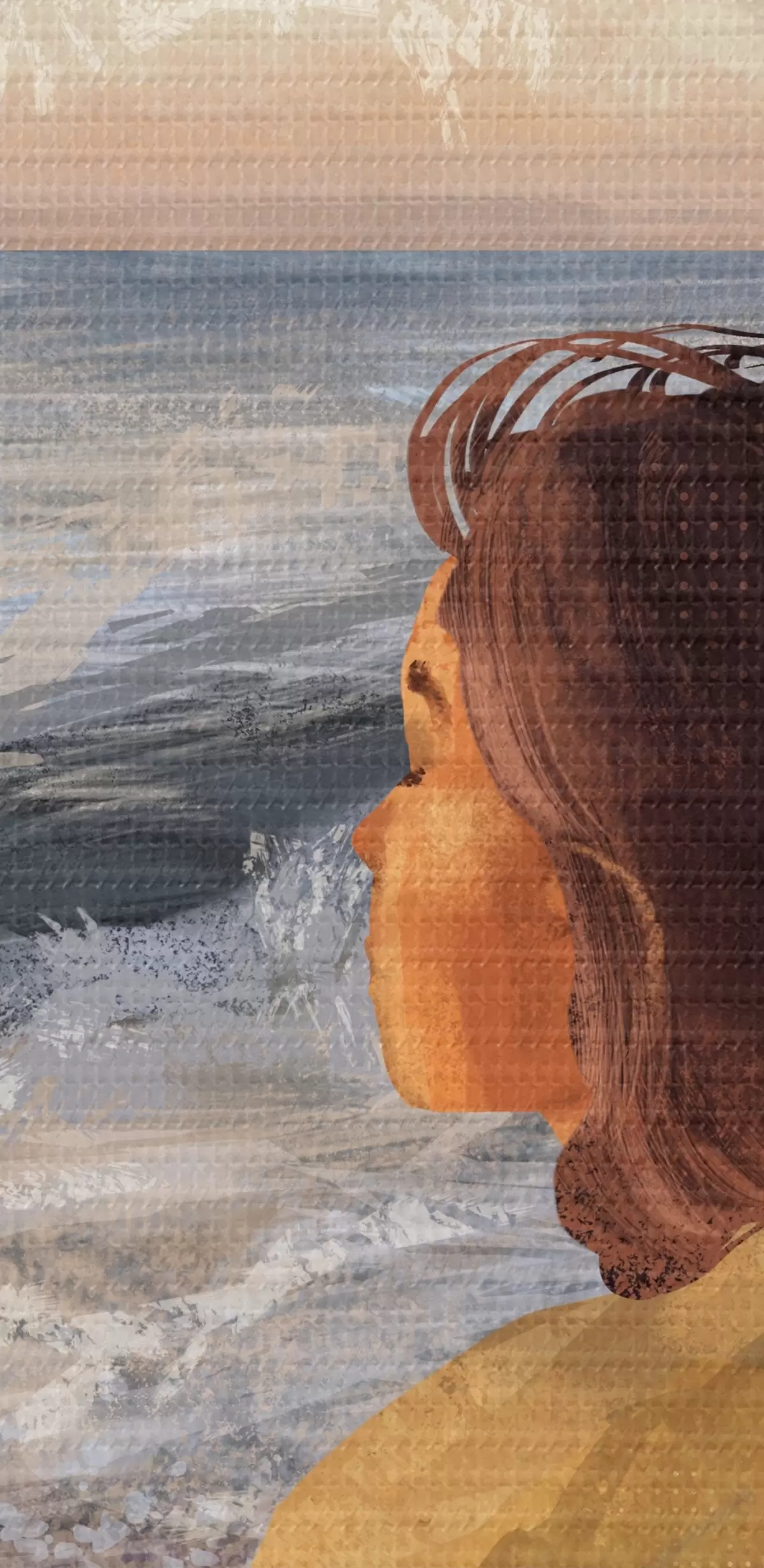 Gemälde Frau am Meer, die über die Wellen nachdenkt Art. s35317