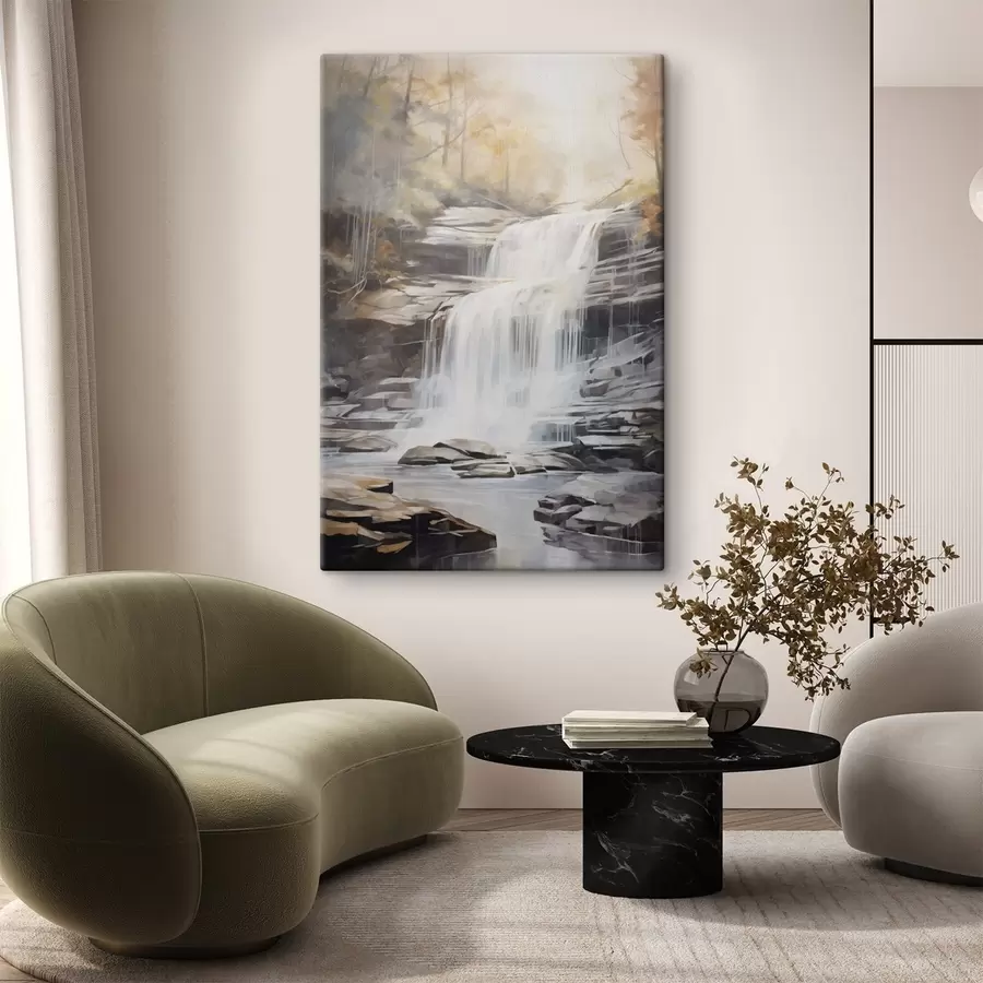 Wandbilder Eine Landschaftsmalerei mit Struktur, die Berge und einen See imitiert