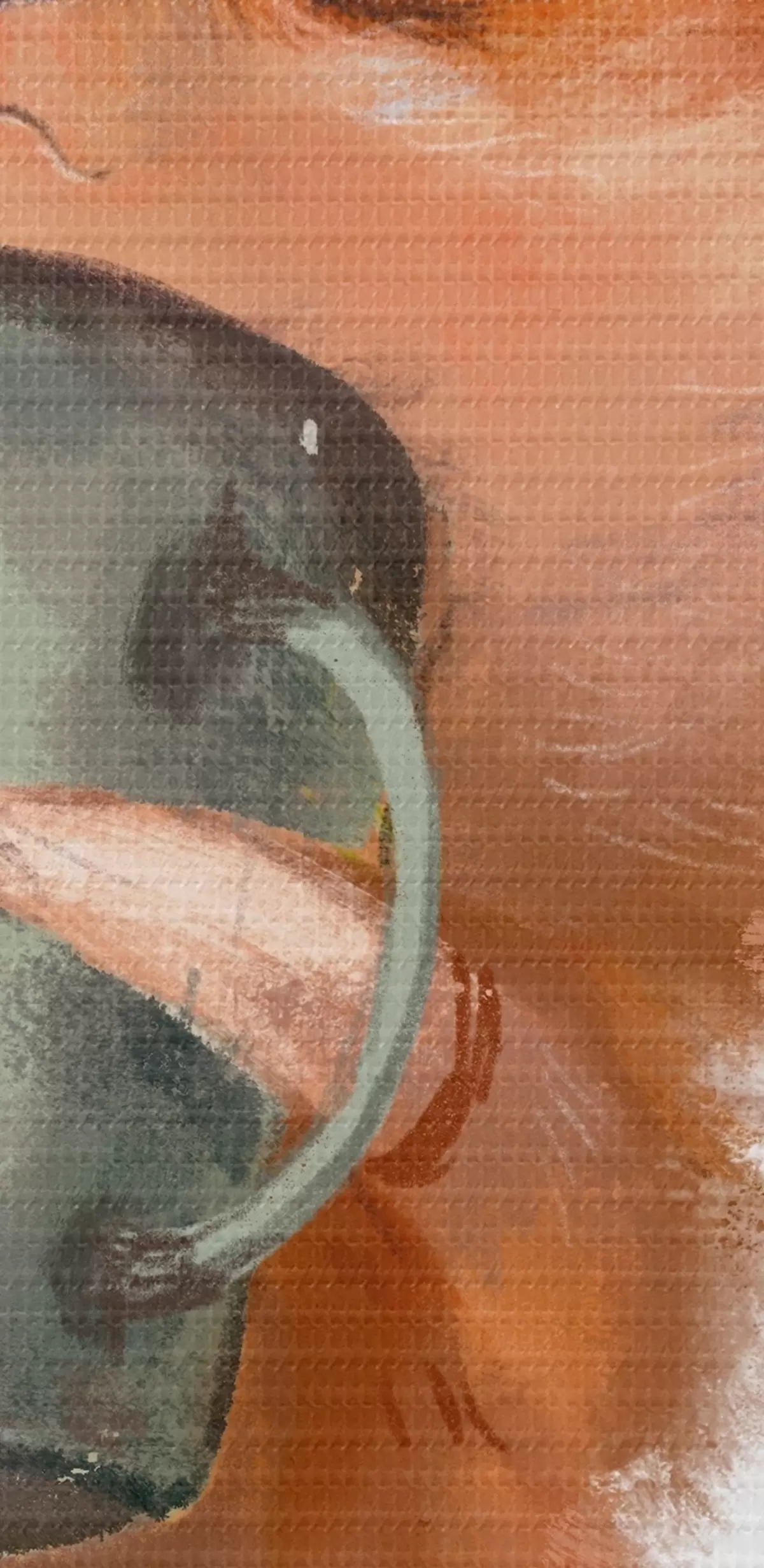 Um die Leinwand auf Keilrahmen zu spannen, ohne das Bild zu beschädigen, verwenden wir ein gespiegeltes Bild.