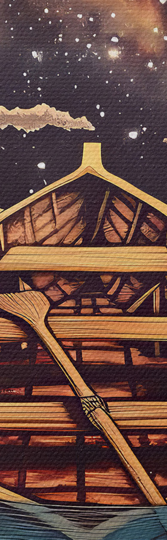 Um die Leinwand auf Keilrahmen zu spannen, ohne das Bild zu beschädigen, verwenden wir ein gespiegeltes Bild.