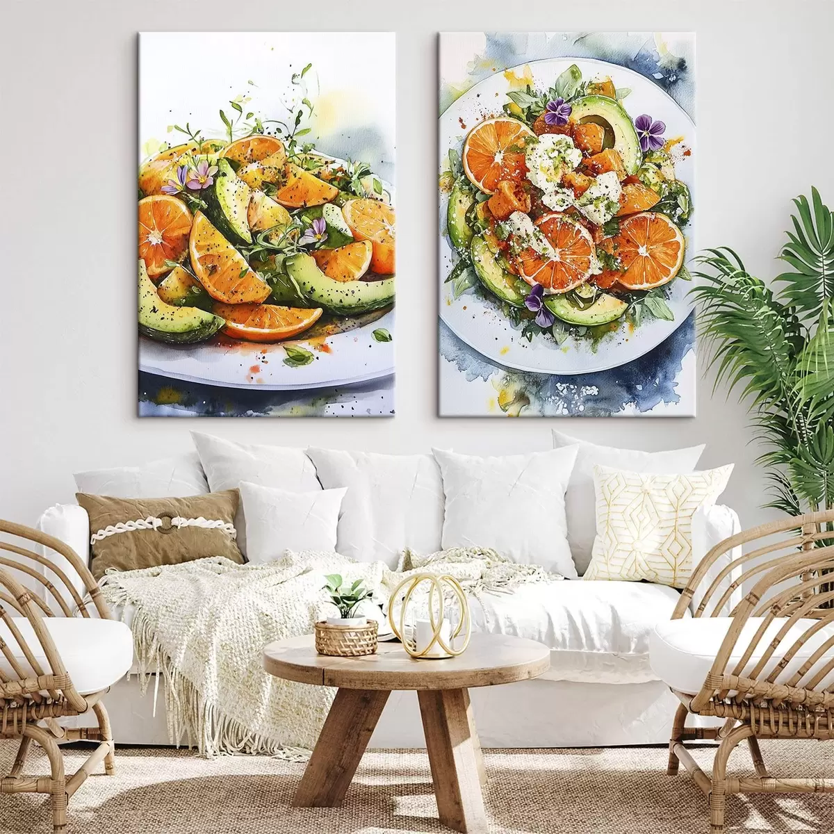 Gemälde Leckerer festlicher Salat mit Orangen, Fetakäse, Kürbissen und Avocado, Aquarellnahrung Art. m00388